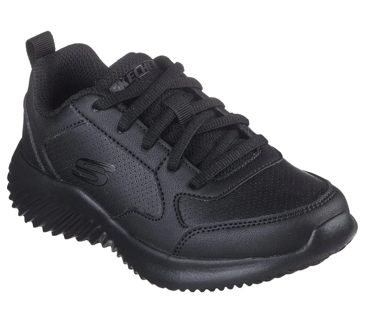 Classic athletic style and comfort combine in Skechers Bounder. This lightweight sporty design features a lace-up synthetic upper with a cushioned comfort insole in monochromatic color options ideal for school uniforms.