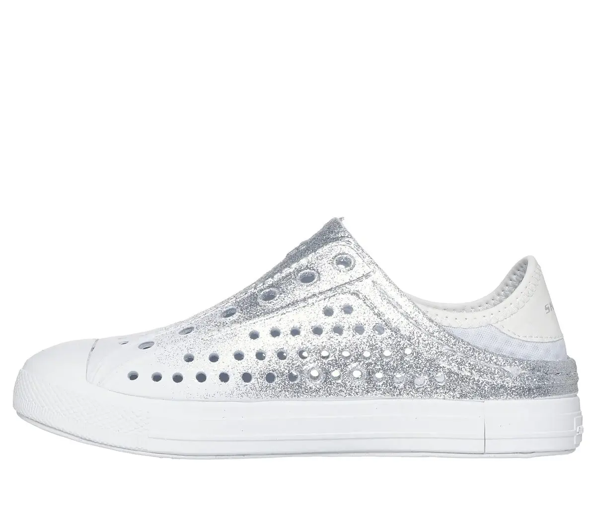 A warm weather favorite gets even more comfortable with Foamies®: Guzman Steps – Glitterland. This sculpted sneaker features a glittery Foamies® flexible EVA perforated upper with a cushioned insole and a collapsible soft neoprene heel for easy on and off.