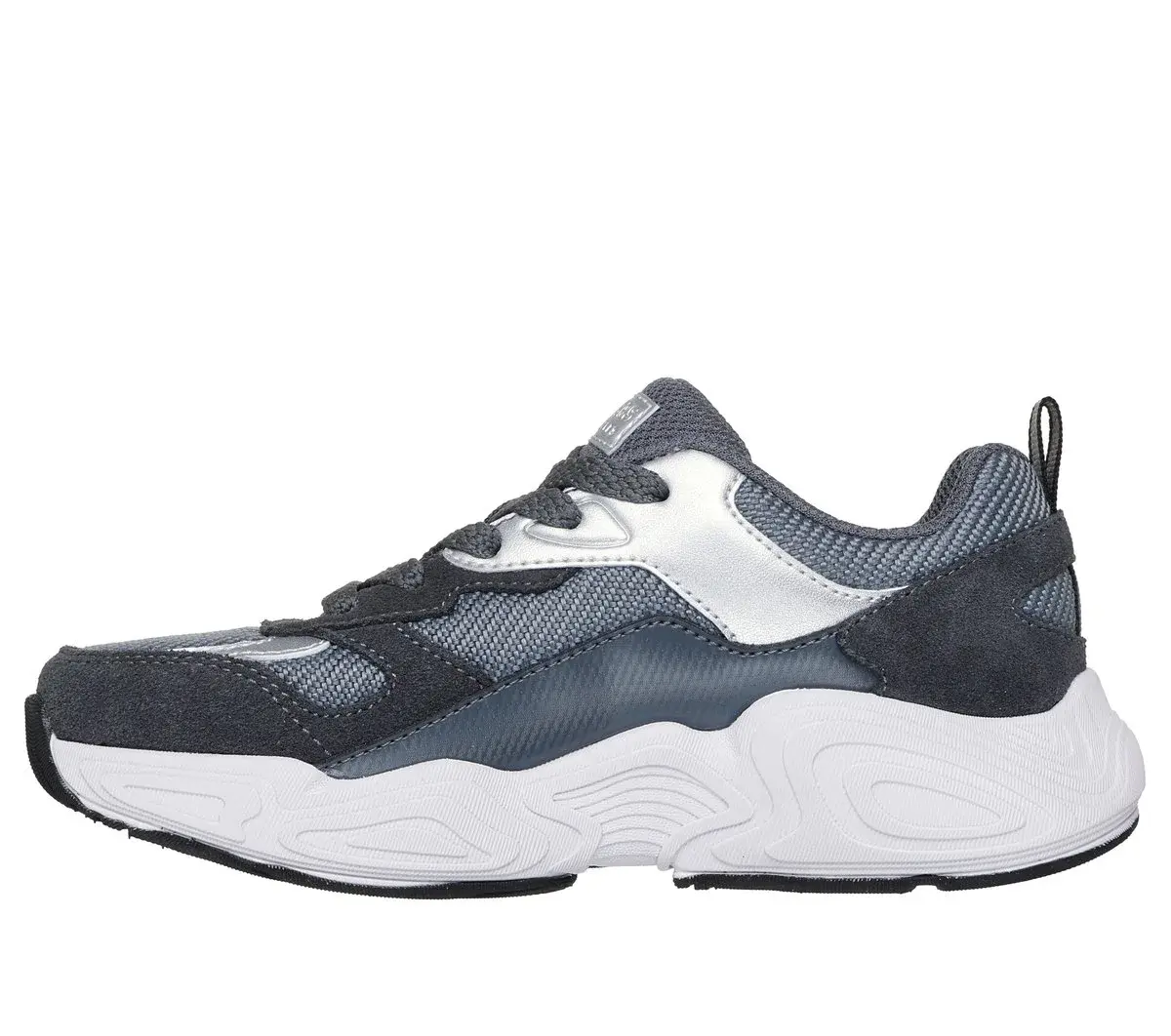 Shake things up on the playground wearing Skecher Street™: Mega-Quake – Shadow Surge. This lightweight lace-up design features a mesh upper with stacked synthetic and genuine suede overlays, a well-cushioned midsole with contour detail, plus a Skechers Air-Cooled Memory Foam® insole.