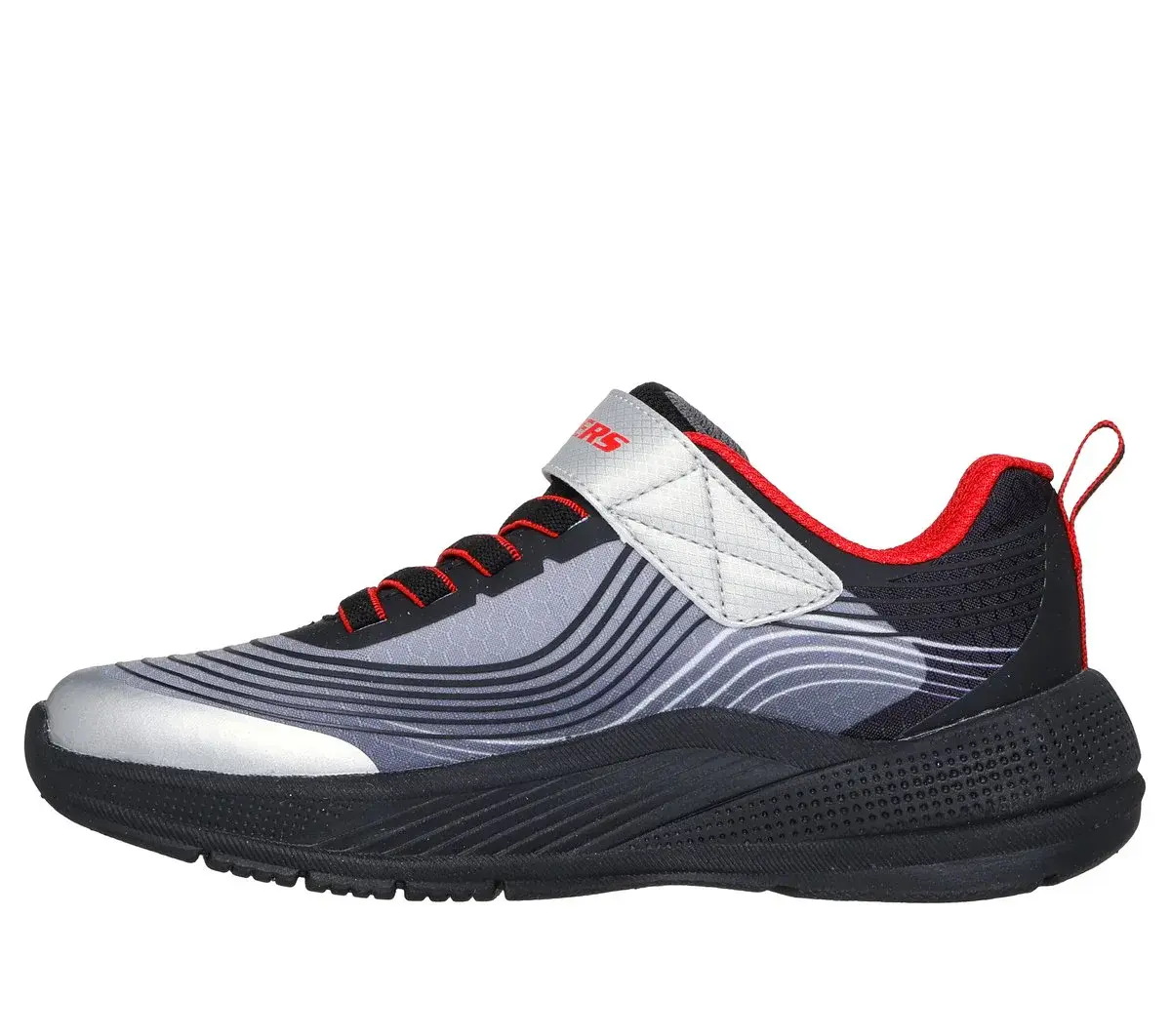 Get active in fun, colorful style wearing Skechers Microspec Advance. This sporty design features a multicolor mesh upper with haptic print overlay, stretch laces, Skechers adaptive closure, and a cushioned comfort insole.