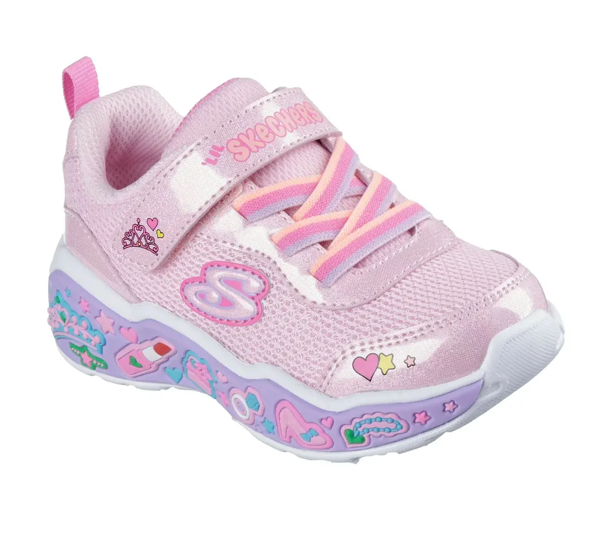 Your little one will be smiling all day long wearing Skechers Play Scene – Fun Squad. This adorable sneaker features a mesh upper with glittery overlays, stretch laces plus Adaptive Closure, and a well-cushioned midsole with playful, themed graphics.