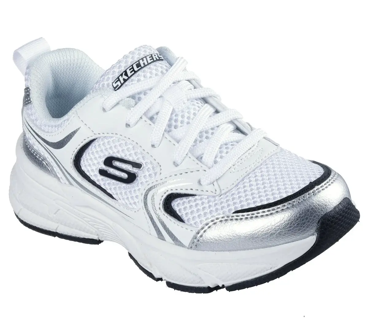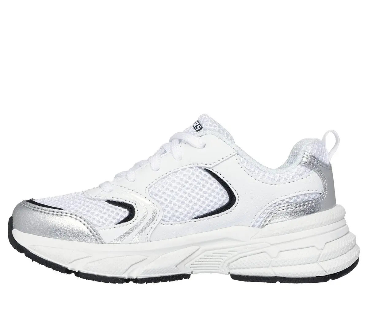 Adventure awaits in every cushioned step with Skechers Retro-Graph. This sporty lace-up features an athletic mesh and synthetic overlay upper with a cushioned comfort insole and bottom plate for enhanced durability.