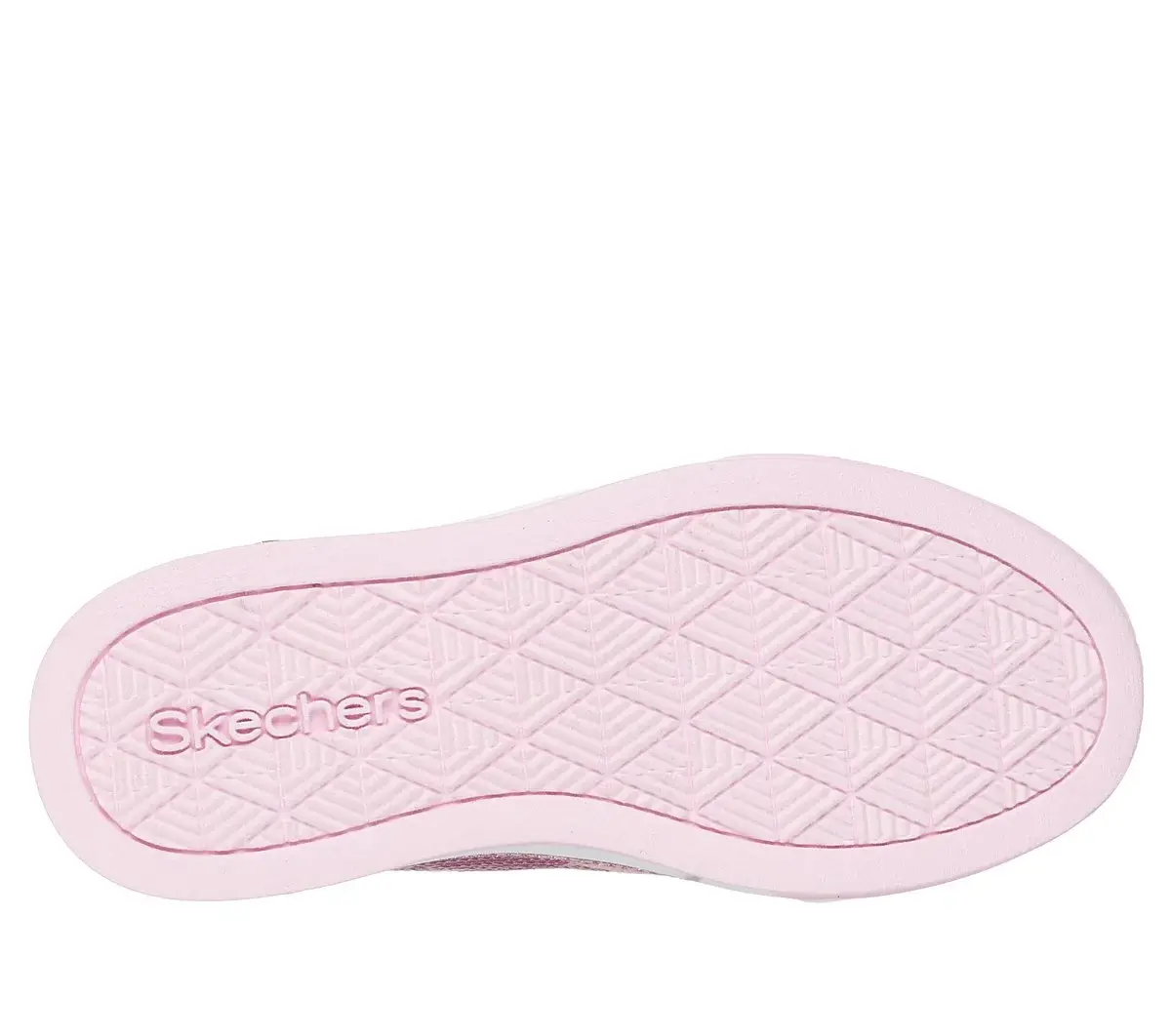 Show off your glam statement in cushioned comfort with Skechers Street™ Shoutouts – Sequins Star. This lace-up fashion high-top features a glitter and sequin embellished synthetic upper with a side zipper, cushioned insole, and metallic heart detail at the midsole.