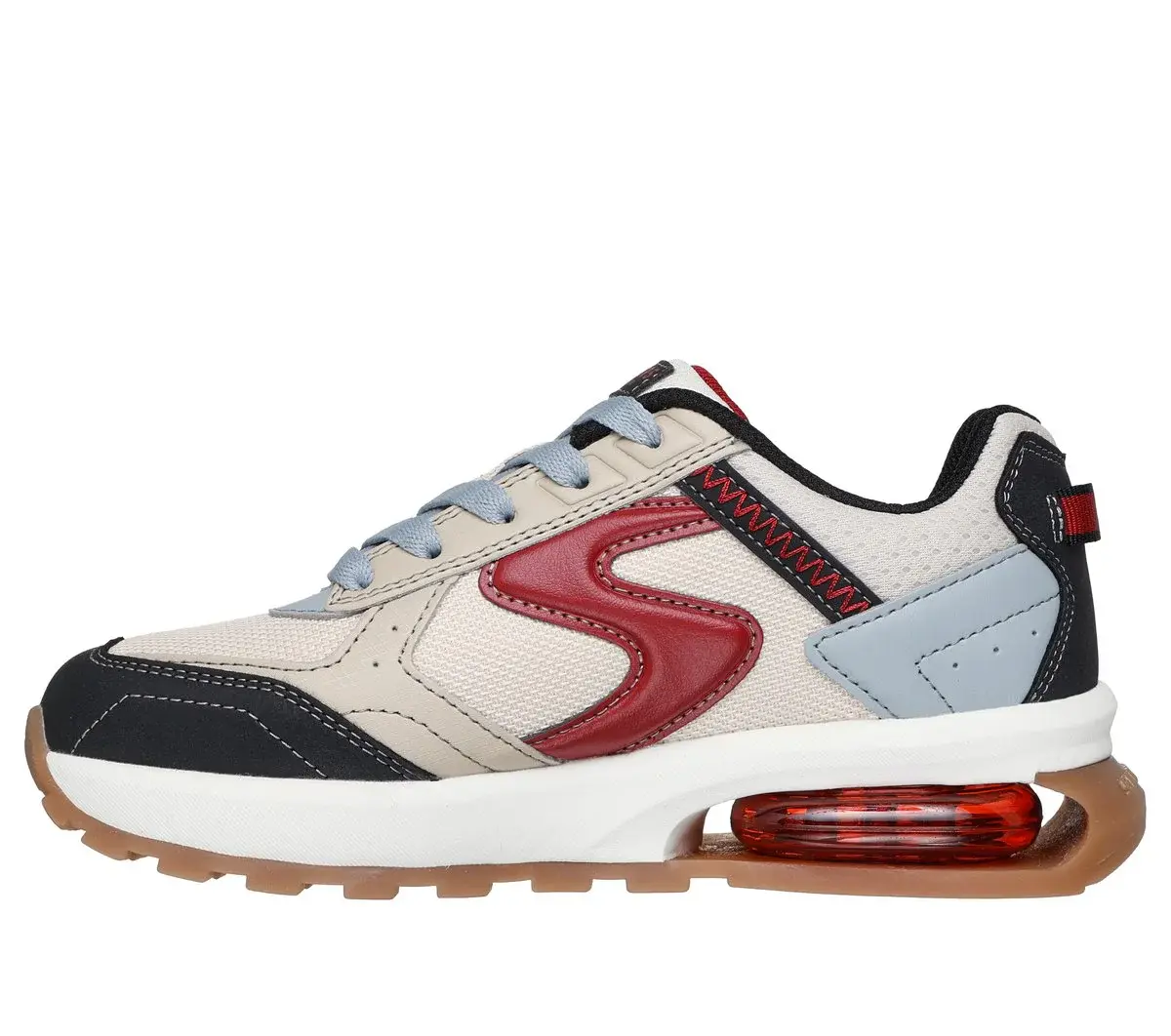 Comfy feet and sporty style make a great pair in Skechers SKX – 167. This retro-inspired lace-up jogger features a mesh and synthetic upper with a Skech-Air® airtech heel piece and a cushioned comfort insole.