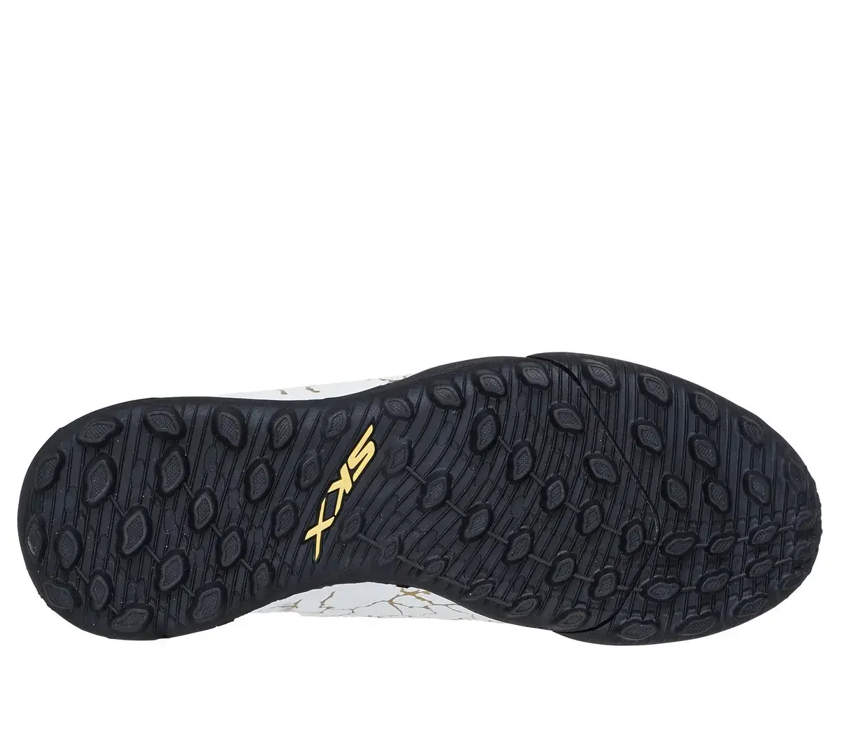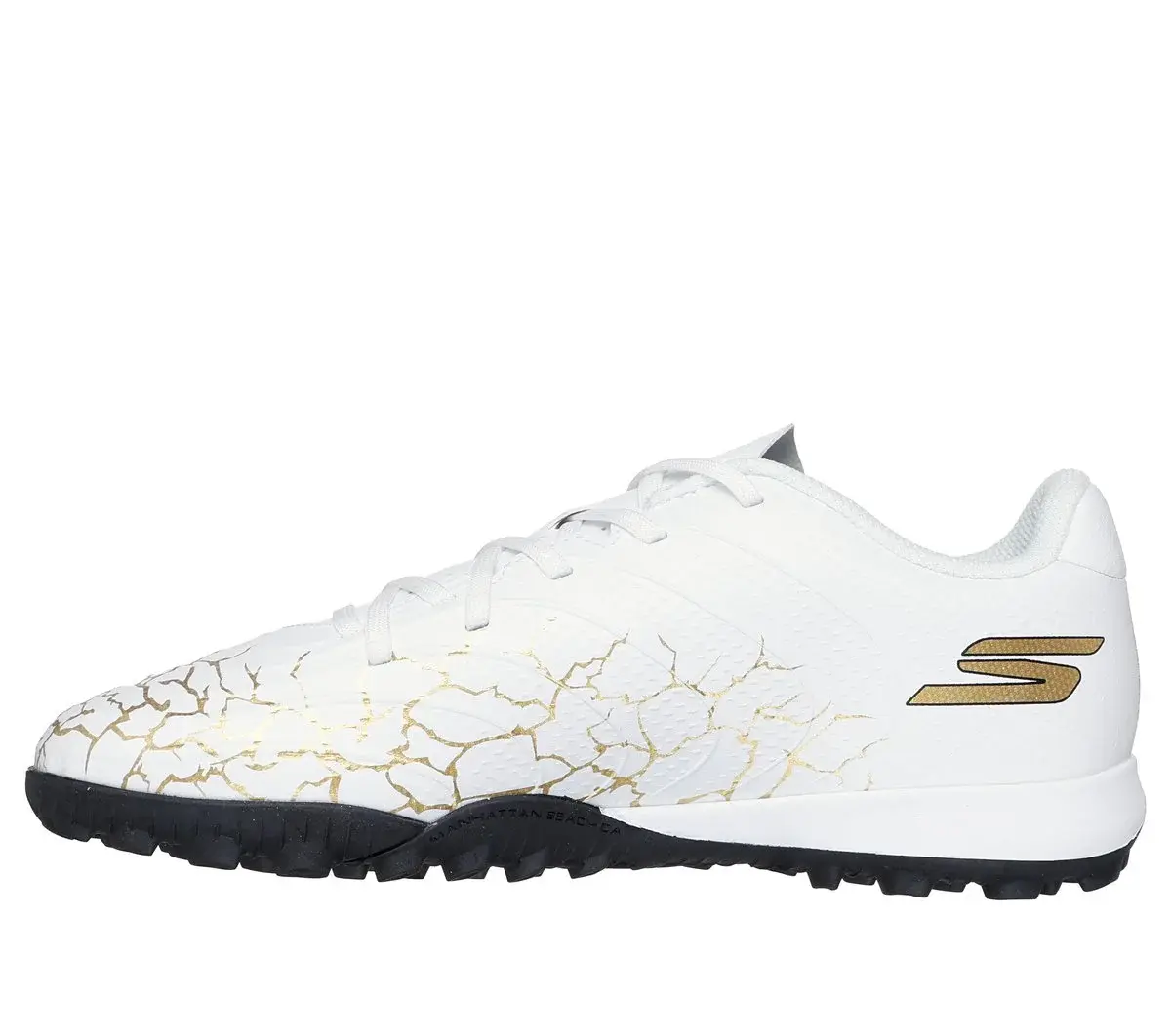 Find the back of the net with Skechers Soccer™: SKX_1.5 Jr Youth TF™. This lightweight turf boot features upper molding engineered for precise ball control, with a responsive, patterned rubber bottom supporting multi-directional grip and movement, plus a soft upper and EVA sockliner for added comfort.