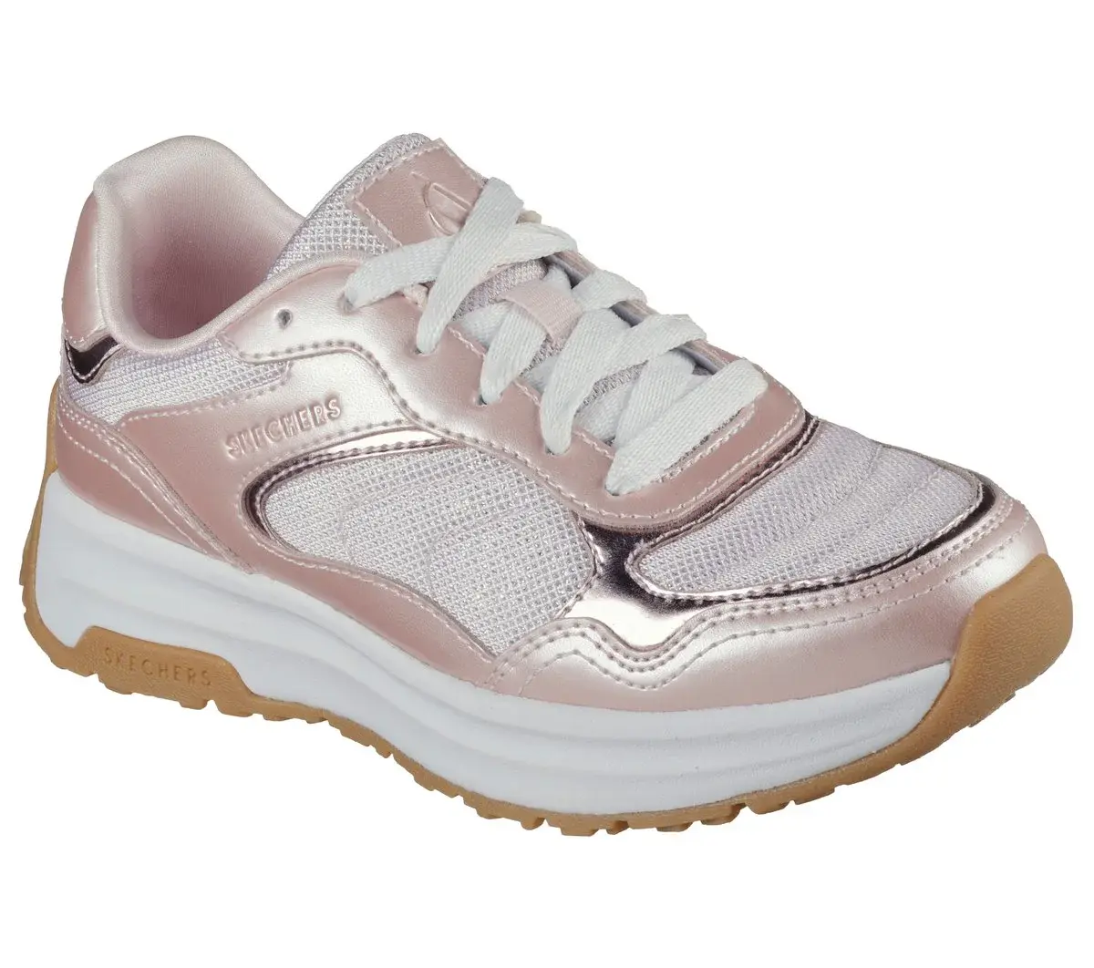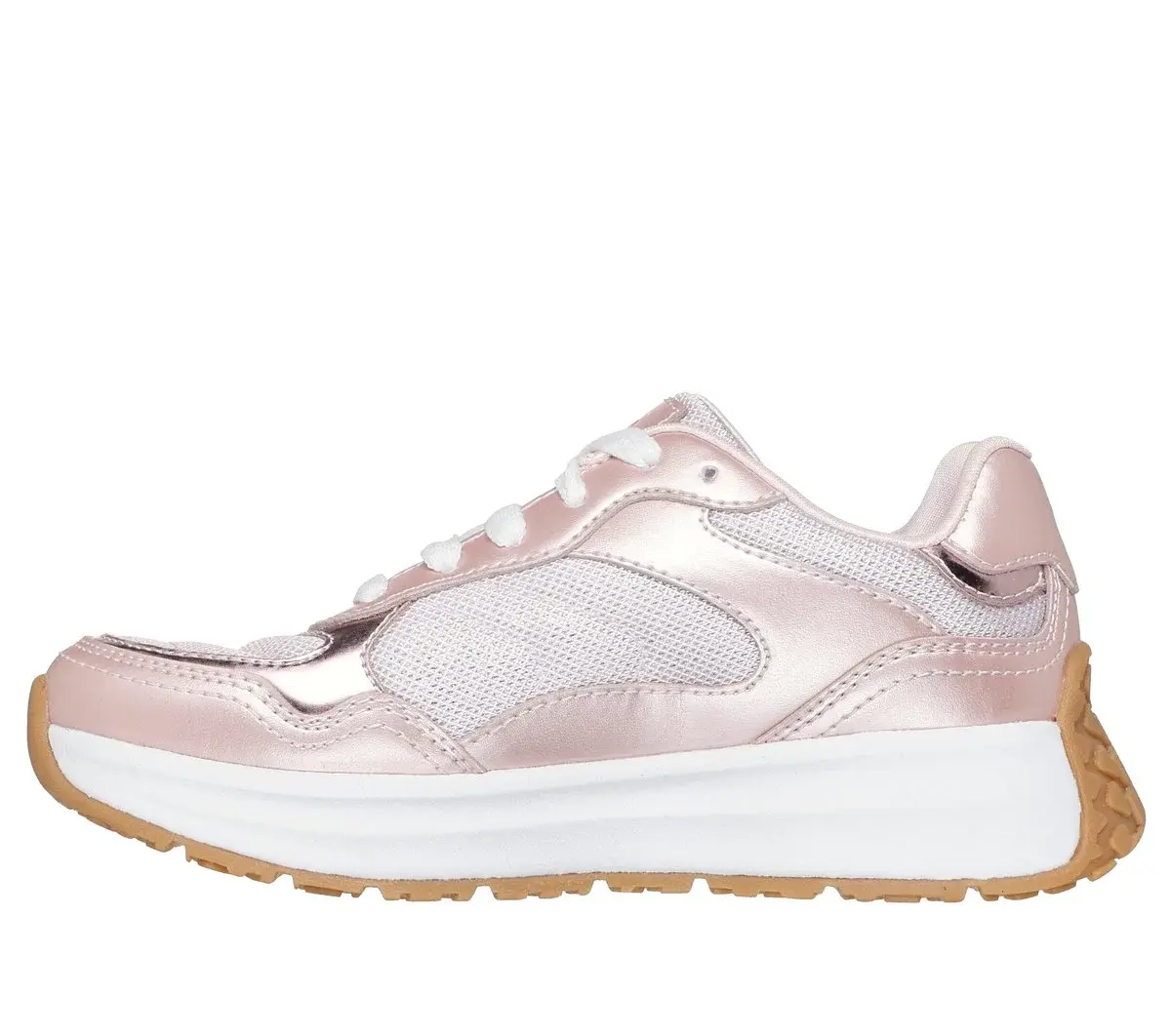 Add some glow to their glam in stylish comfort with Skechers Street™ Lumina. This fun fashion design features a mesh and metallic overlay upper with a lace-up front and a cushioned comfort insole.
