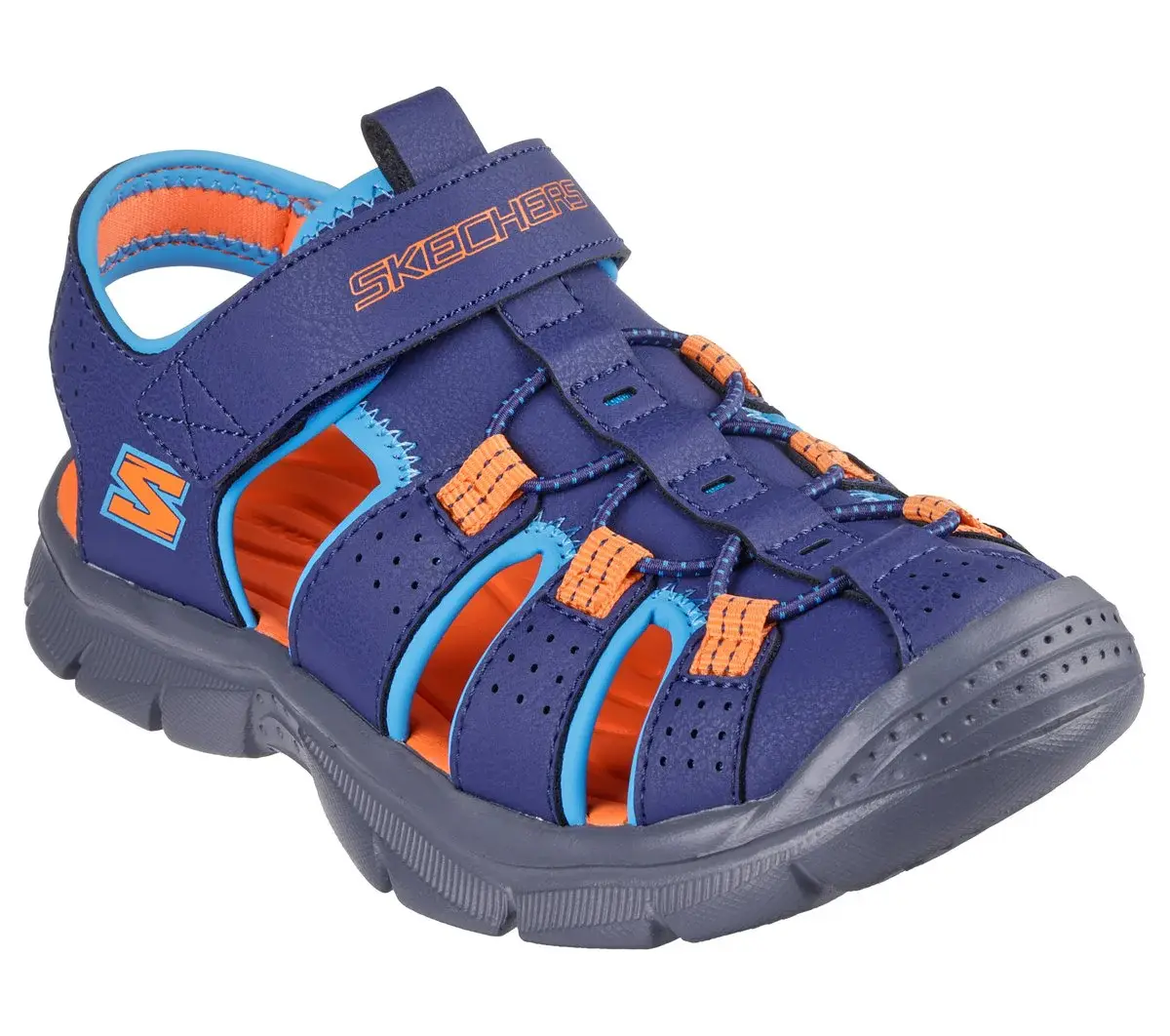 Have all day under the sun with added comfort in Skechers Relix. This fisherman sandal features a synthetic upper with Skechers adaptive closure and a contoured cushioned footbed.