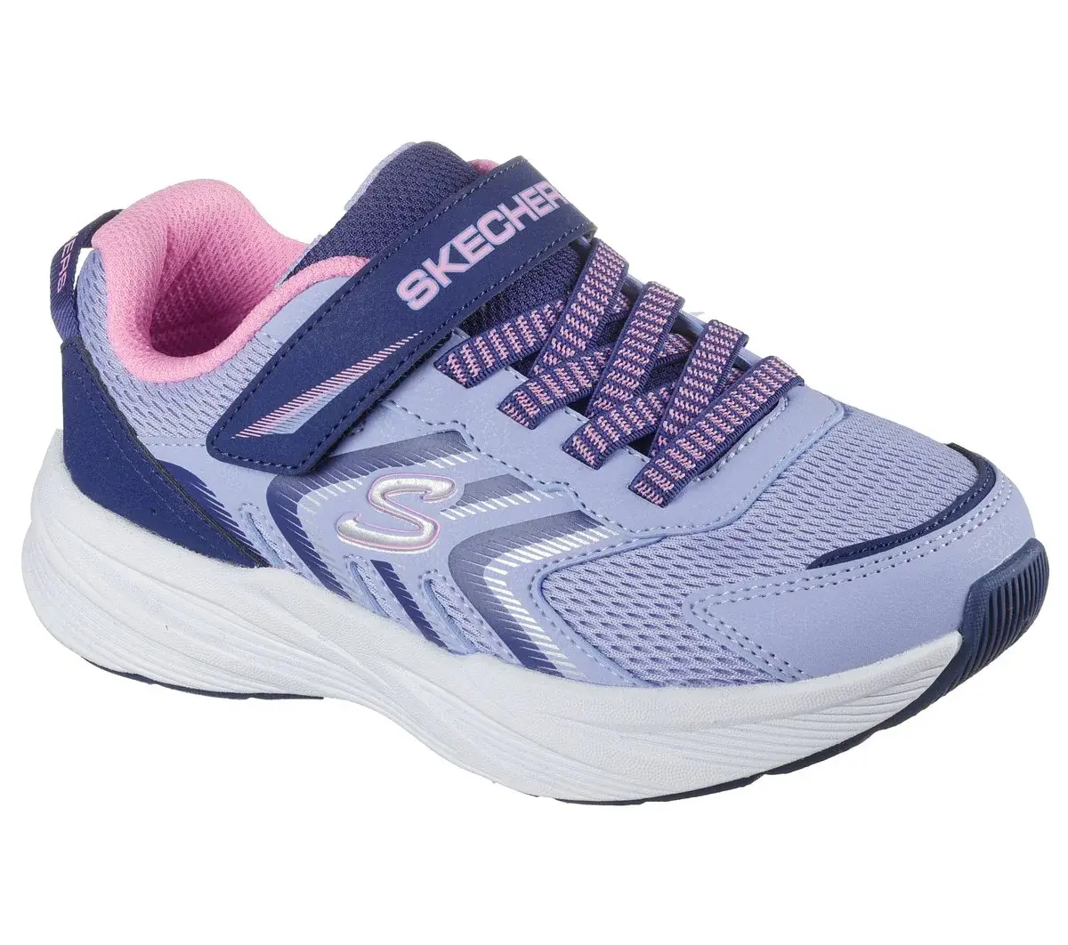 Get active in fun, colorful style wearing Skechers Microspec Tread. This Skechers adaptive closure design features a mesh and synthetic overlay upper with an adjustable instep strap, fixed stretch laces, and a cushioned comfort insole.