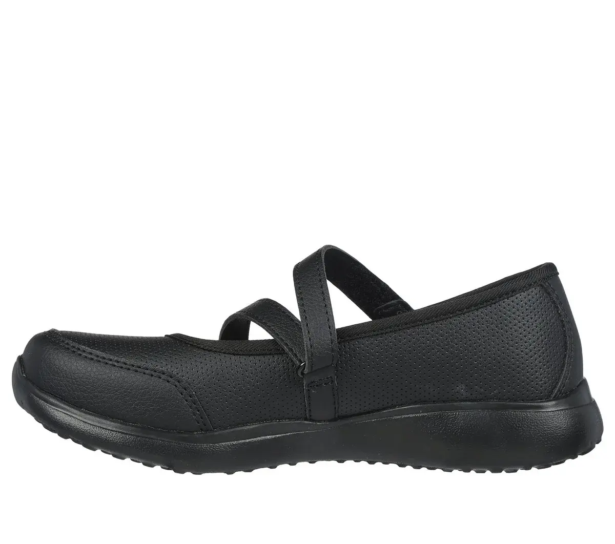 Freshen up your kids’ school look in comfort and style with Skechers Microstrides – School Bus Kicks. This school uniform compliant mary jane style feature a lightweight synthetic upper with dual adjustable instep straps and a cushioned comfort insole.