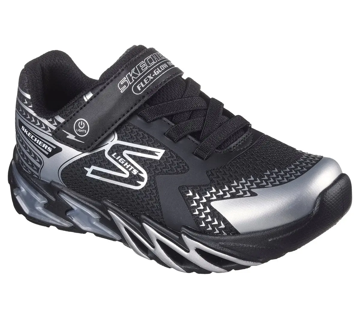 Gear up with light-up style and comfort wearing Skechers S-Lights®: Flex-Glow Bolt. This lighted design features a mesh and synthetic upper with stretch laces, adjustable instep strap and a cushioned comfort insole.