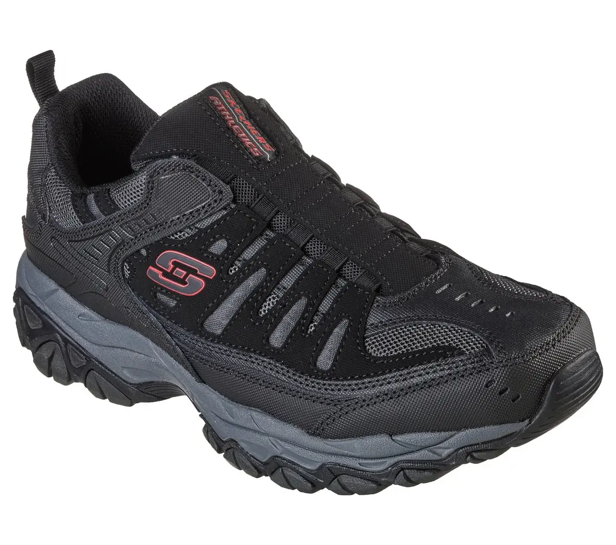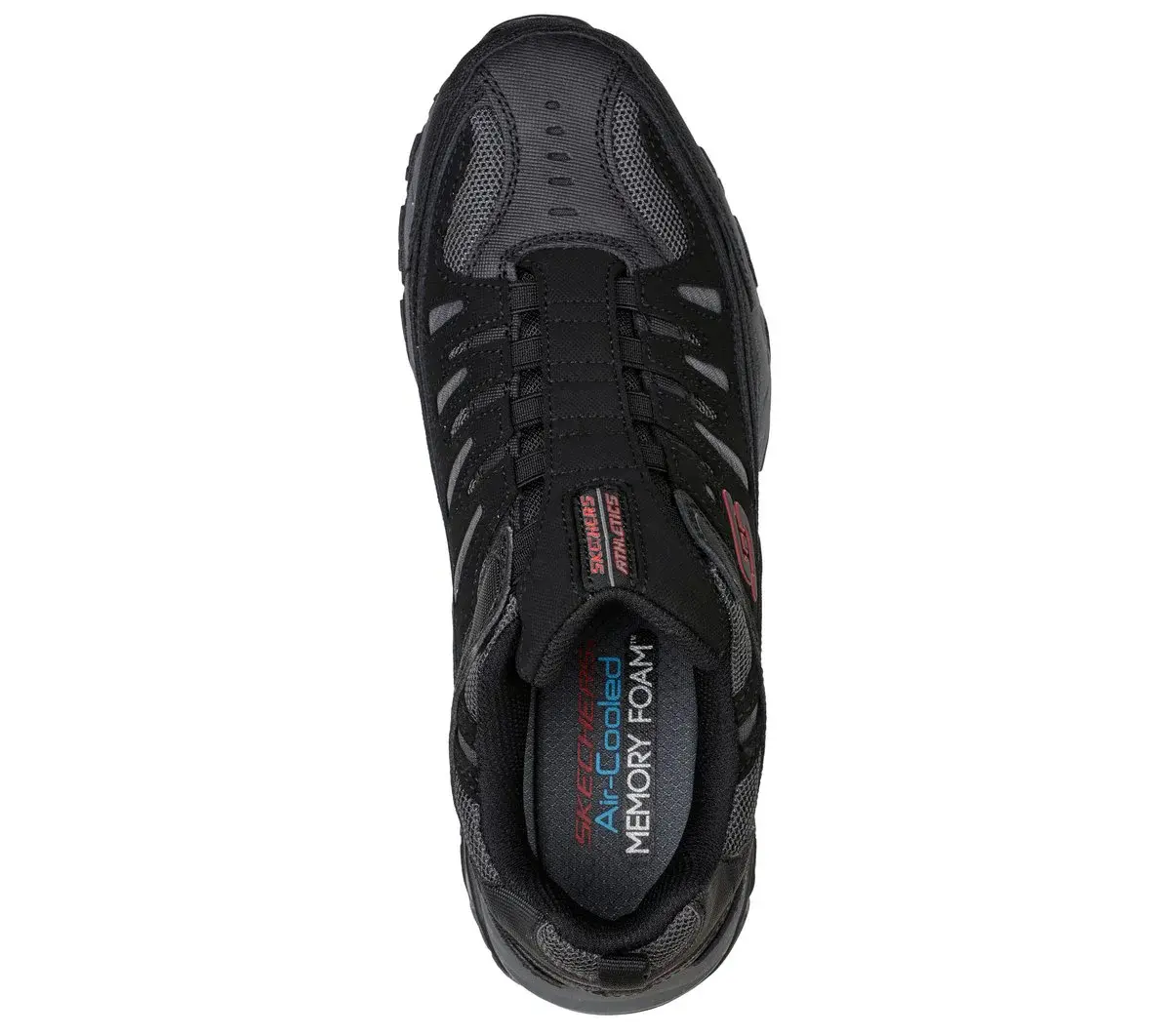 A classic style gets even easier to wear with Skechers After Burn M. Fit. This slip-on sporty trainer features a leather, synthetic and mesh upper with an Air-Cooled Memory Foam® insole.