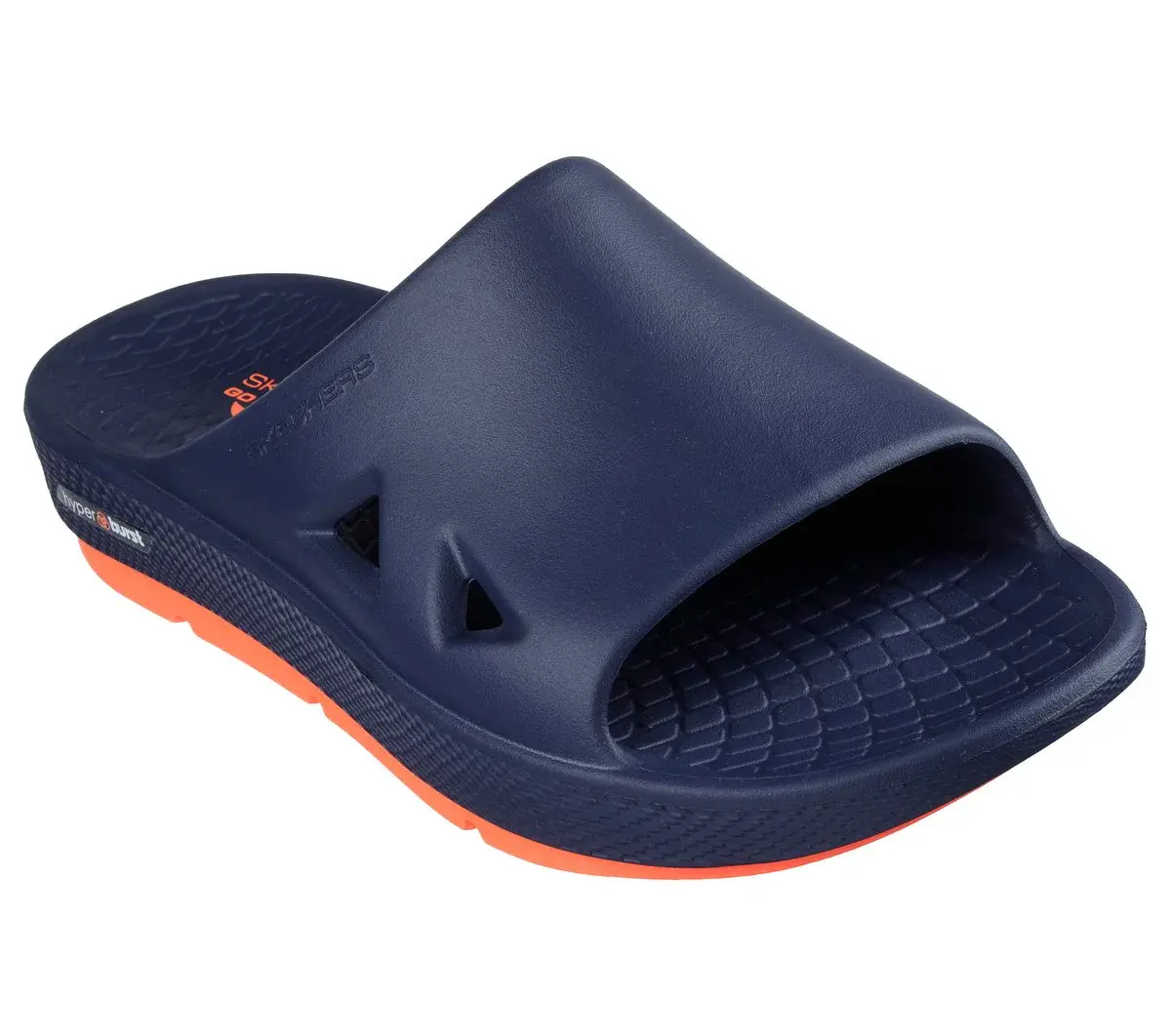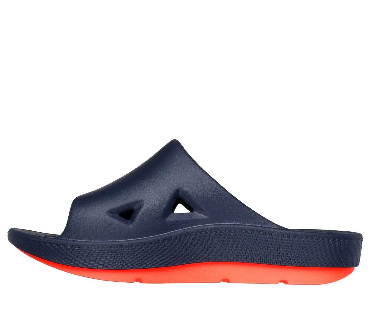 Relax in specialized comfort and style wearing Skechers GO RECOVER® Refresh. This athletic recovery slide sandal features a marble print synthetic upper with premium Hyper Burst® foam and Arch Fit® support redistributes pressure for impact reduction, plus Luxe Foam® cushioning for added comfort.