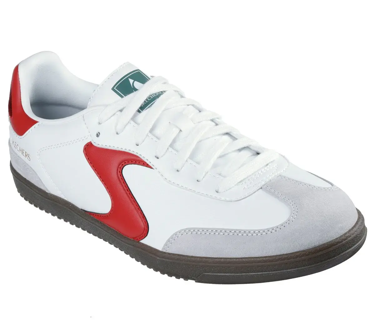 A modern classic meets fresh comfort in Skechers Hotshot – Pyke. This lace-up Court & Classics sneaker features a duraleather and pig suede upper with contrast ‘S’ quarter logo and our signature Skechers Air-Cooled Memory Foam® cushioned insole.