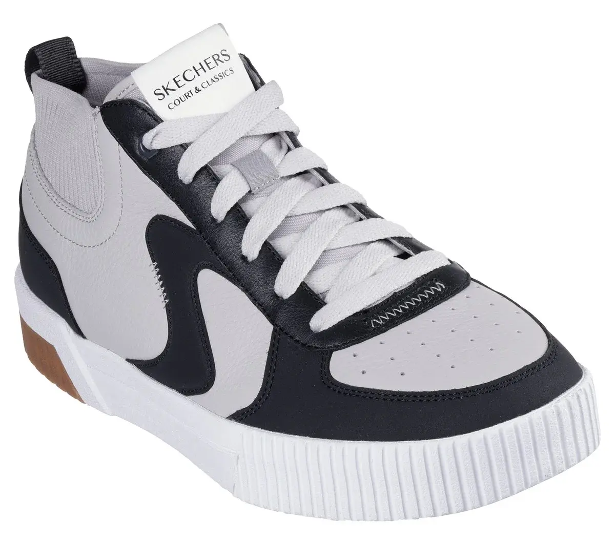 A classic court-style silhouette gets a fresh update in Skechers Jade – Alerro. This mid-top sneaker features a leather upper with faux-leather overlays, rib knit collar, and a cushioned Skechers Air-Cooled Memory Foam® insole.