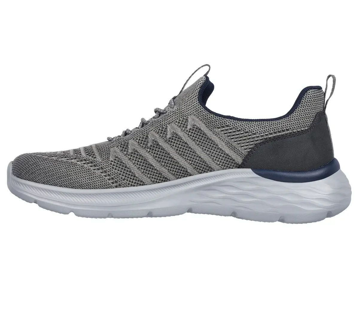 Try your new look in modern comfort and sleek design wearing Skechers Relaxed Fit®: Garner – Crispin. This roomy vegan style features an athletic mesh upper with fixed stretch-laces, a charcoal-infused Skechers Air-Cooled Memory Foam® insole, and Goga Mat Arch™ cushioning for added support.