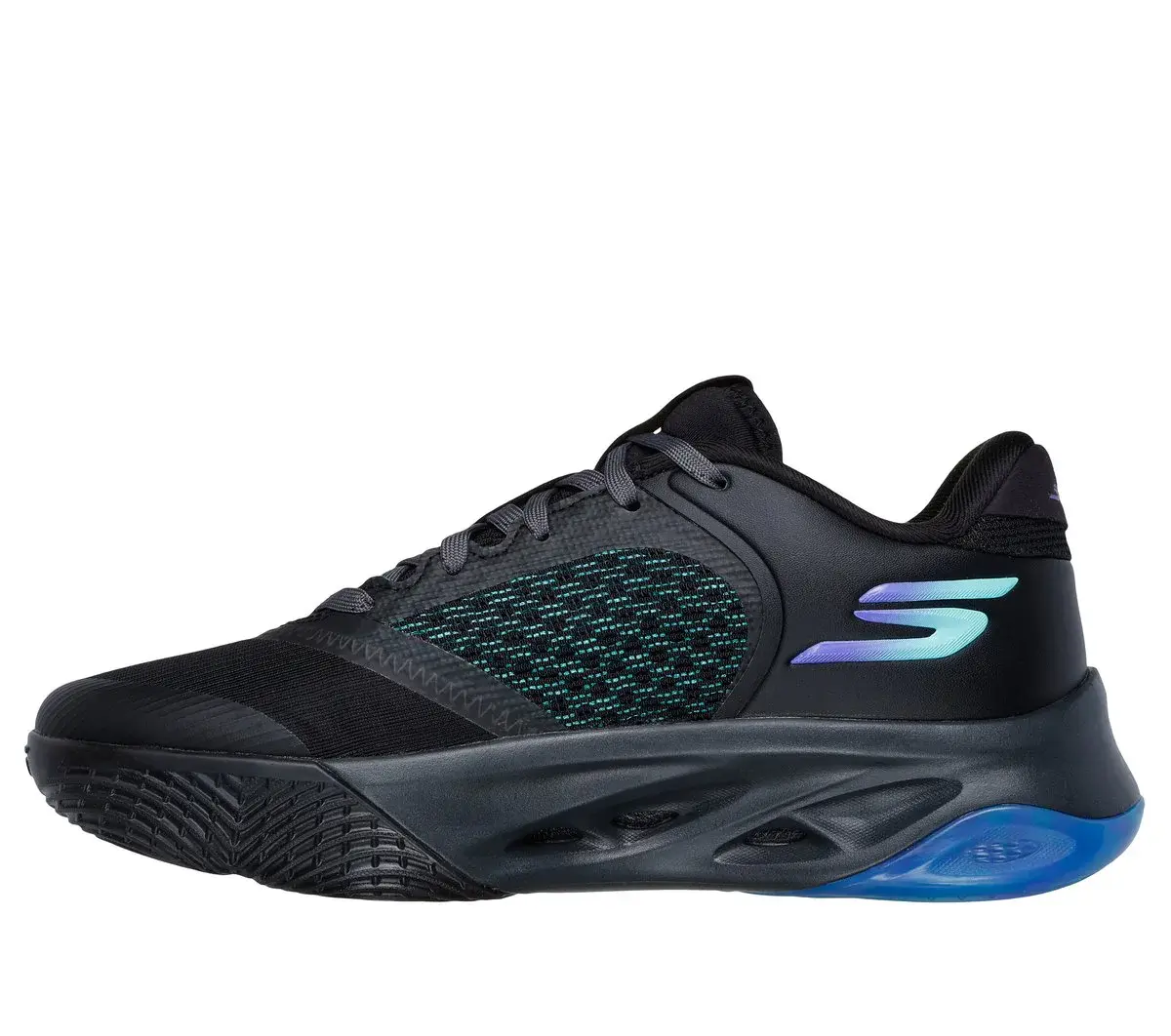 Dominate the court with the exceptional performance and support of Skechers Basketball®: SKX FLOAT™ that feature a locked-down heel for players who prefer more stability. These basketball shoes offer a low top collar with a resilient HYPER BURST PRO™ sockliner, breathable mesh upper, responsive HYPER BURST® cushioning, and durable Goodyear® performance outsoles with enhanced traction.