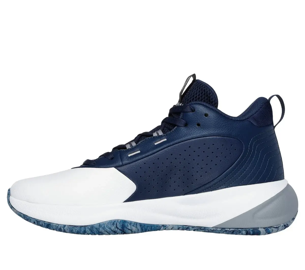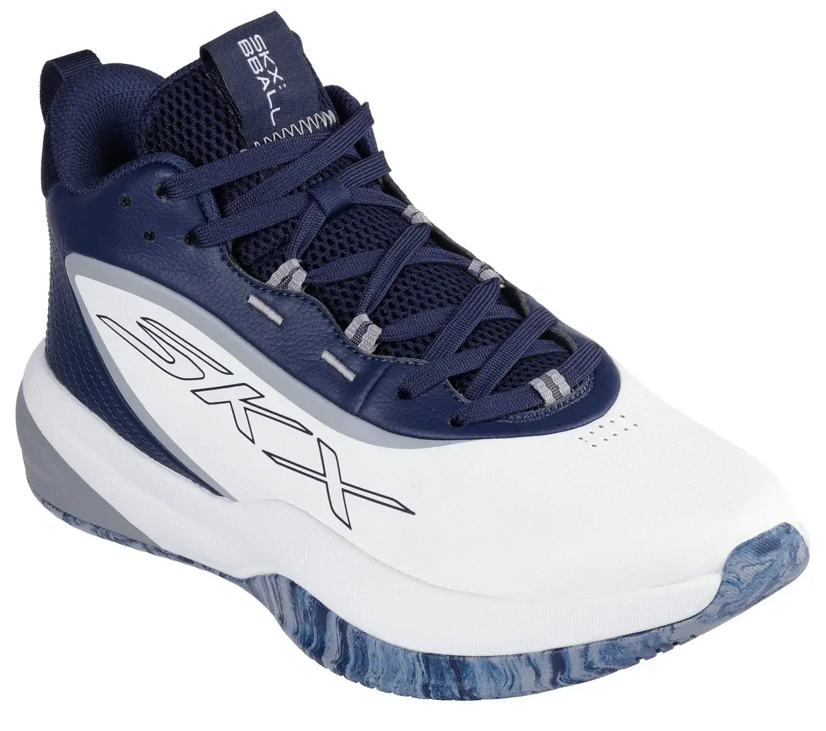 Whether driving to the hoop or locking down defense, you’ll have the winning edge with Skechers Basketball®: SKX League™. This high-top performance court shoe delivers optimal comfort and exceptional stability. A breathable perforated leather upper promotes air flow, while resilient Skechers MOVE FOAM™ insoles and innovative 5-GEN® Foam cushioning respond quickly underfoot.
