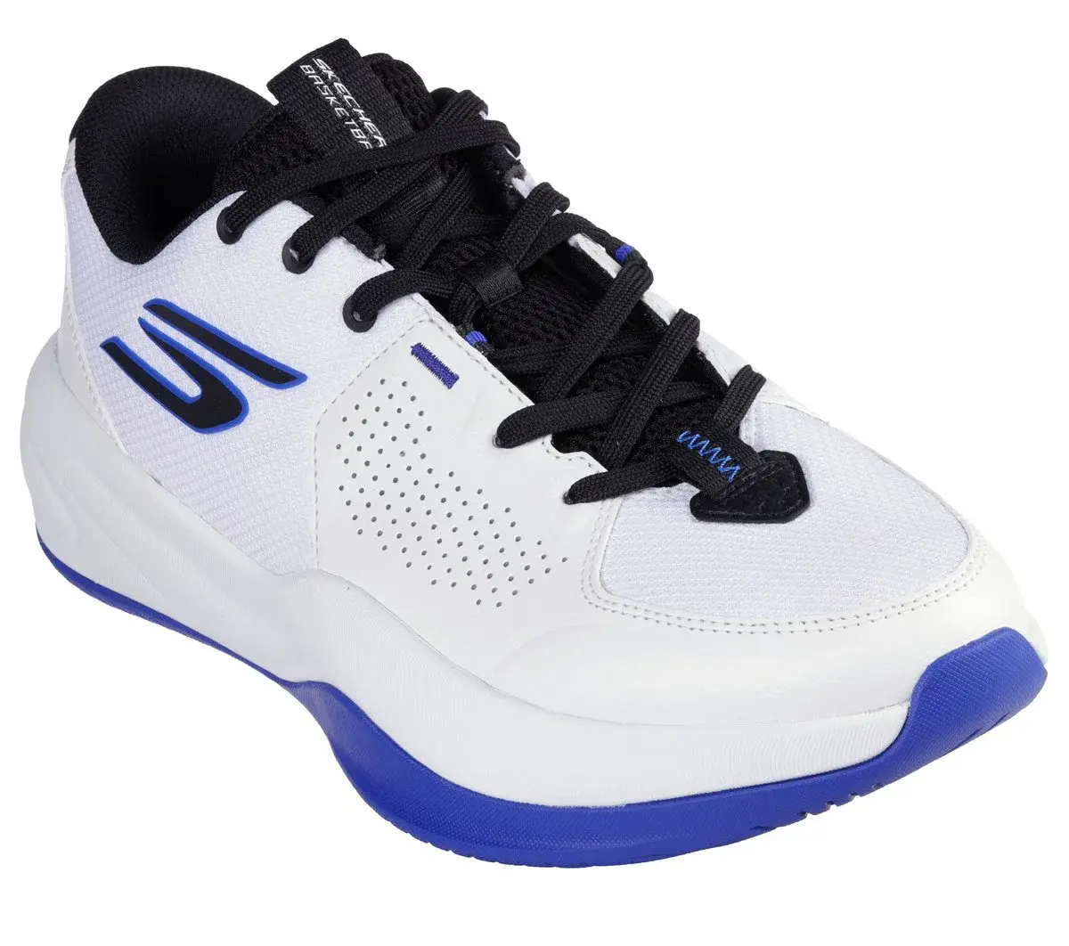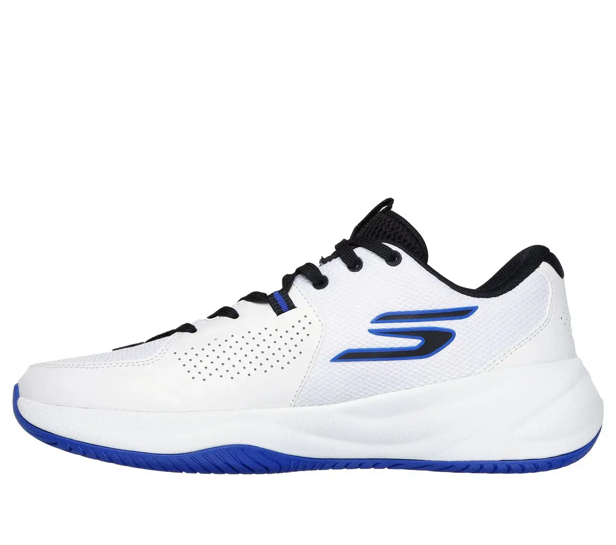 Move up and down the court like a champion wearing Skechers Basketball®: SKX League™. Designed for optimal comfort and exceptional stability, this low-top basketball lace-up features a breathable, lightweight mesh and durable leather upper. It’s equipped with a Skechers MOVE FOAM™ insole and innovative 5-GEN® Foam for responsive cushioning.