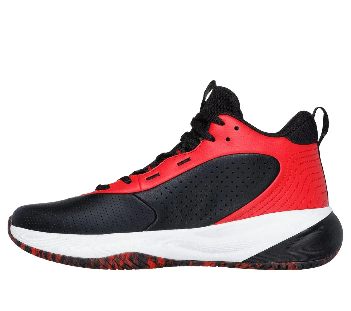 Whether driving to the hoop or locking down defense, you’ll have the winning edge with Skechers Basketball®: SKX League™. This high-top performance court shoe delivers optimal comfort and exceptional stability. A breathable perforated leather upper promotes air flow, while resilient Skechers MOVE FOAM™ insoles and innovative 5-GEN® Foam cushioning respond quickly underfoot.