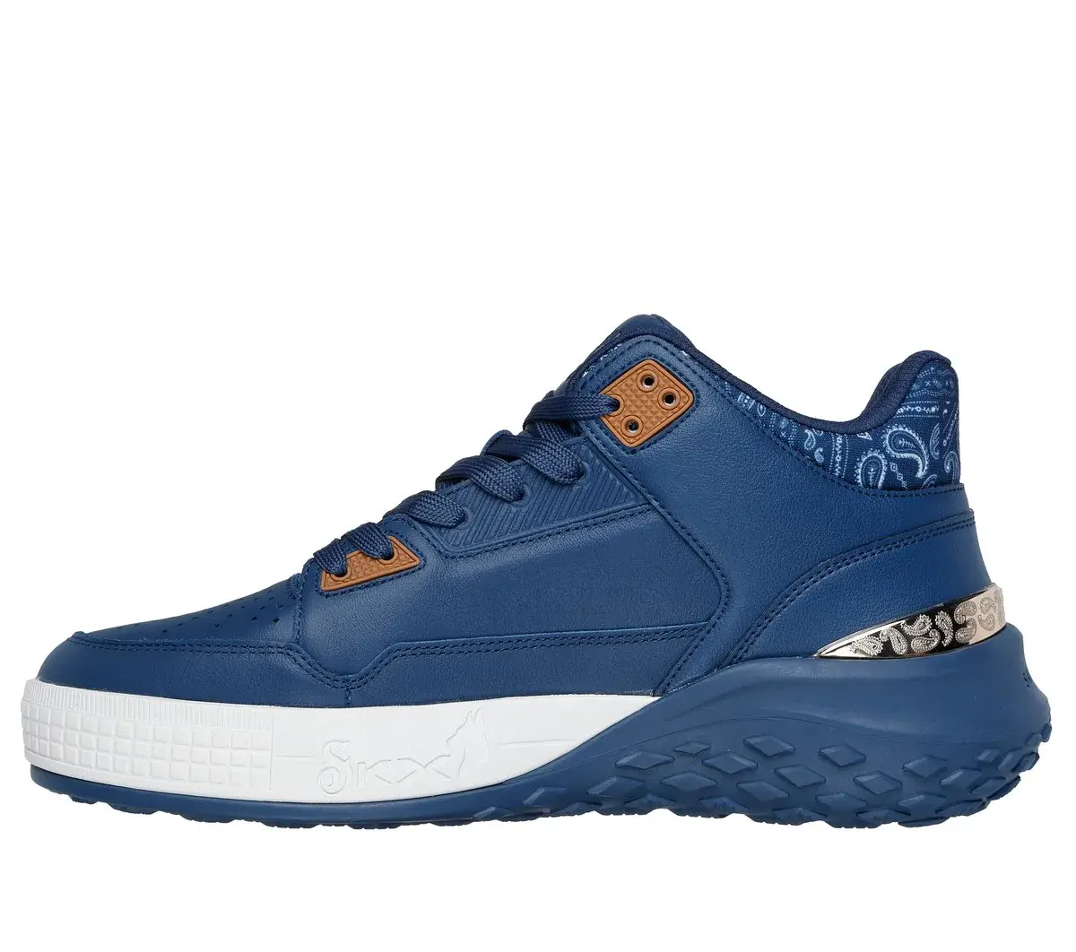 Dropping like it’s hot: Skechers x Snoop Dogg: Sizzle – Buckets OG. This fly and fresh mid-top court style is as unique as the D-O-Double G himself. Featuring a smooth and perforated premium leather upper with paisley print collar detail, metallic heel trim, and an oh-so-cushy Skechers Air-Cooled Memory Foam® insole.