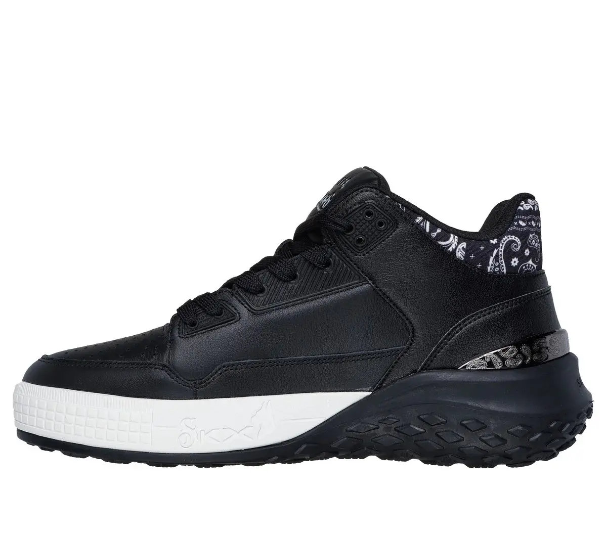 Dropping like it’s hot: Skechers x Snoop Dogg: Sizzle – Buckets OG. This fly and fresh mid-top court style is as unique as the D-O-Double G himself. Featuring a smooth and perforated premium leather upper with paisley print collar detail, metallic heel trim, and an oh-so-cushy Skechers Air-Cooled Memory Foam® insole.