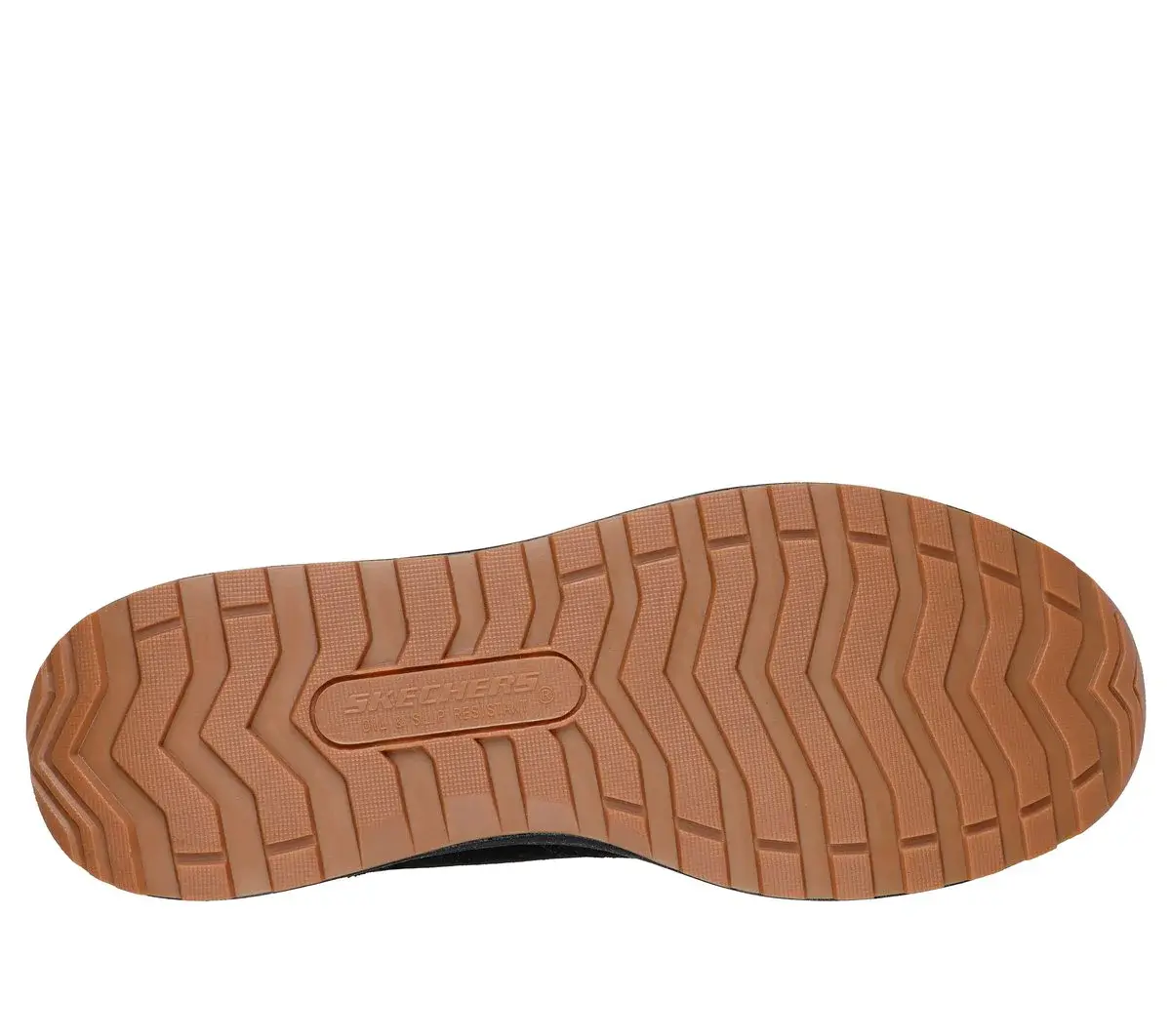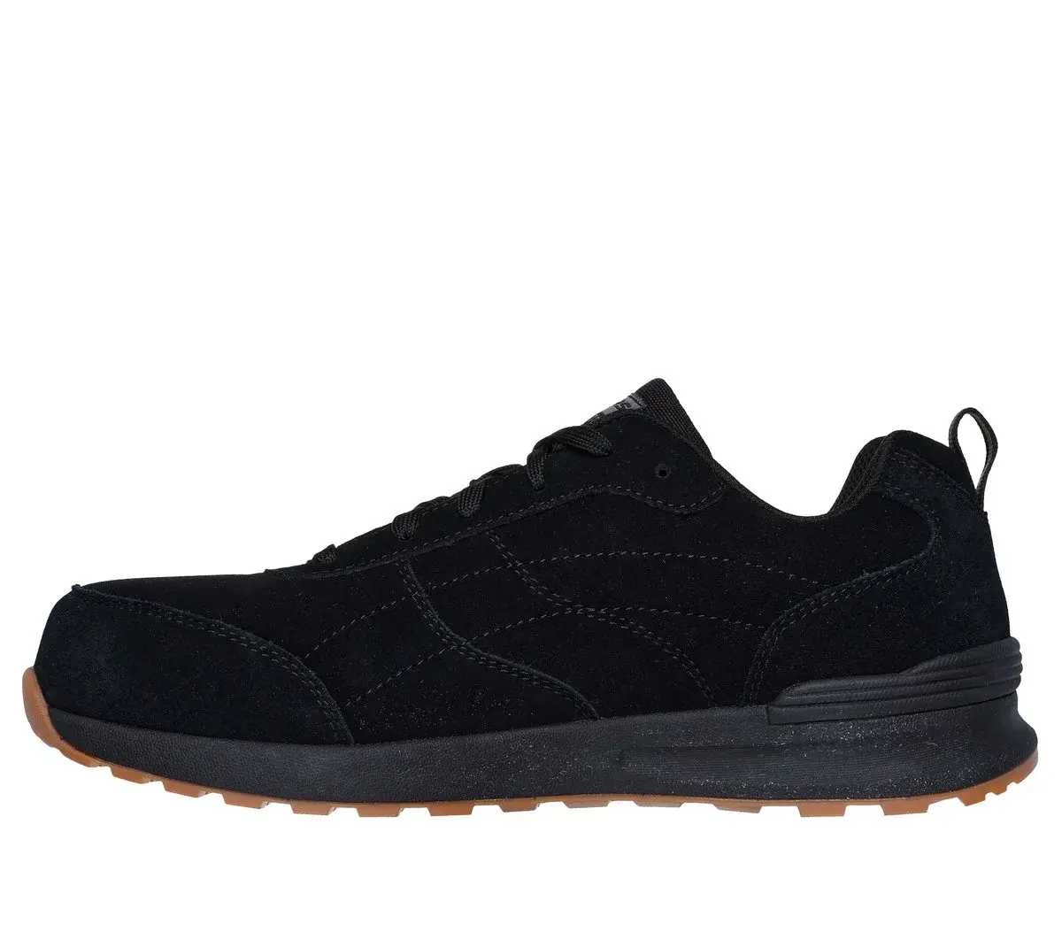 Start your shift in surefooted protective comfort with Skechers Work™: Bulklin – Atlis ESD. This slip-resistant work sneaker features a genuine suede upper with a lace-up front, cushioned Skechers Air-Cooled Memory Foam® insole, and a non-metallic carbon nano safety toe.