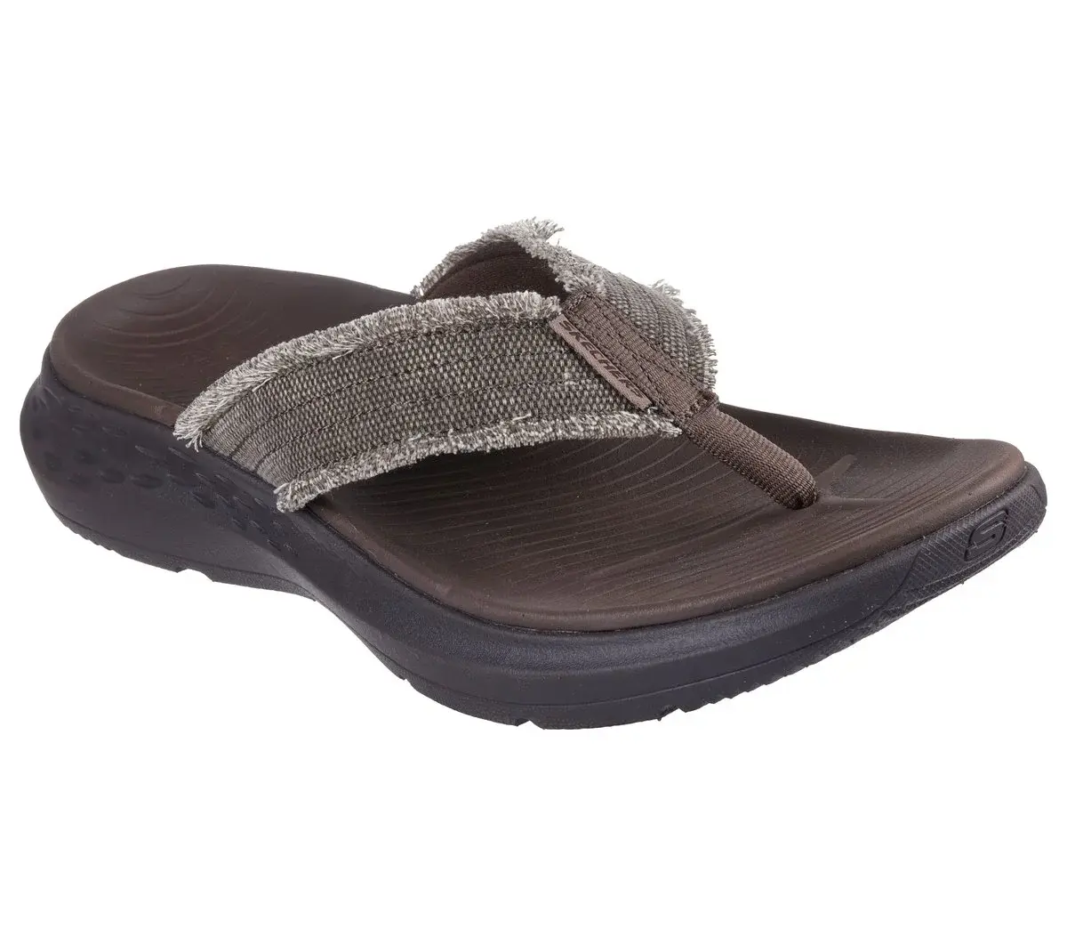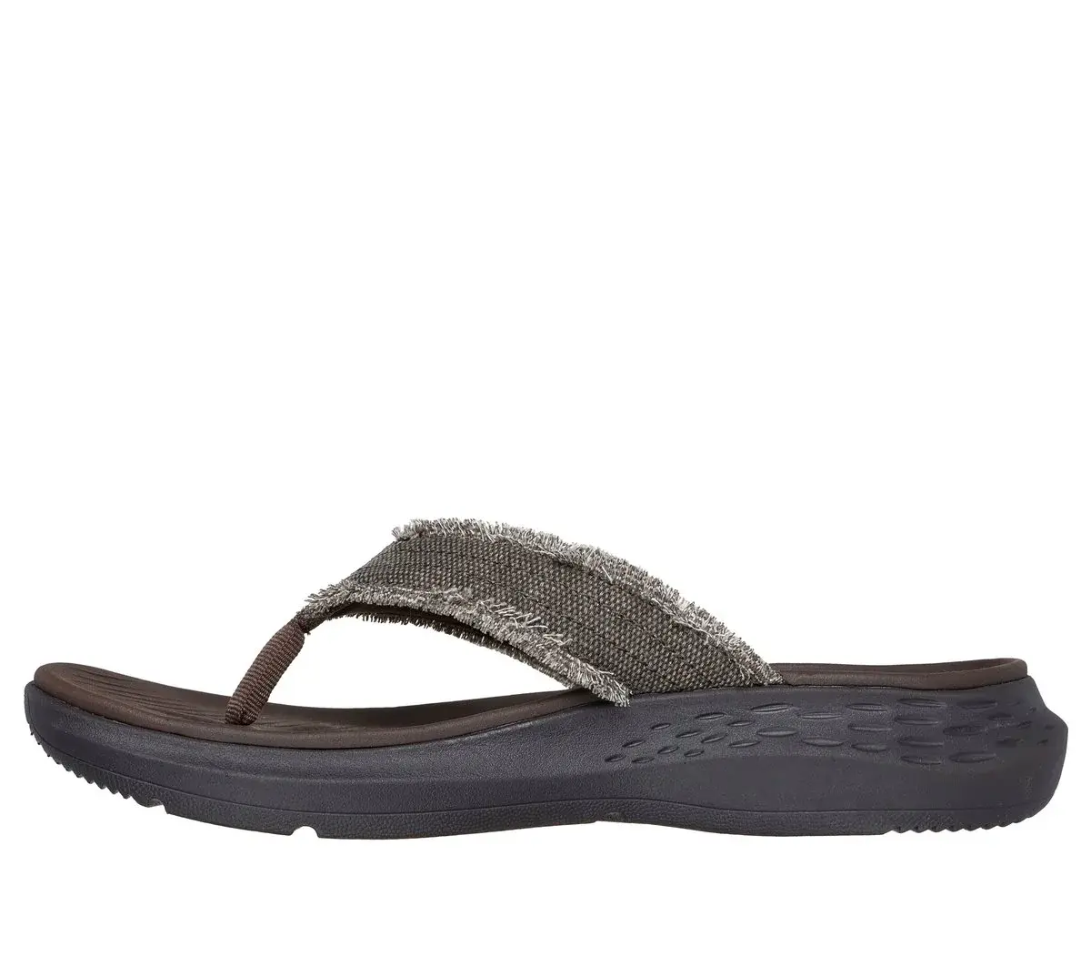 Sunny-weather comfort and classic style combine in Skechers Relaxed Fit®: Parson SD. This sandal features a thong strap canvas upper with frayed trim, Luxe Foam® footbed and a cushioned midsole.