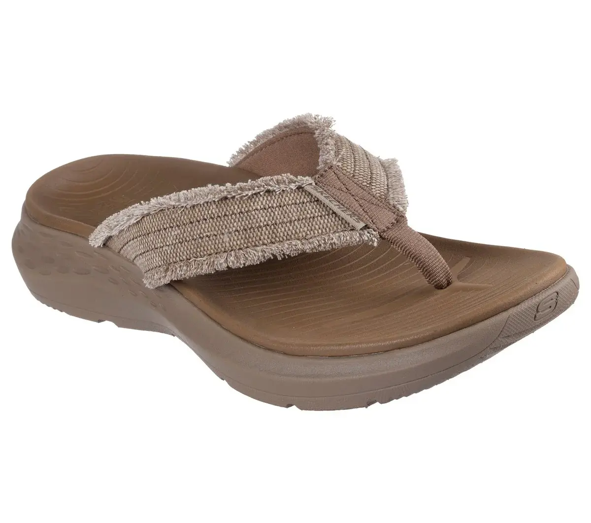Sunny-weather comfort and classic style combine in Skechers Relaxed Fit®: Parson SD. This sandal features a thong strap canvas upper with frayed trim, Luxe Foam® footbed and a cushioned midsole.