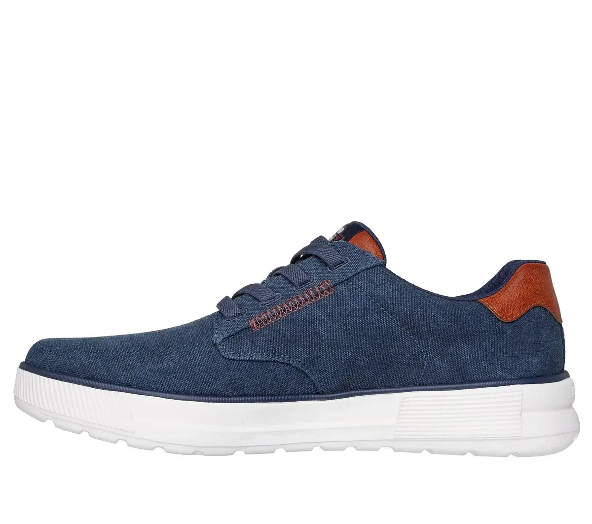 Street-smart style meets all-day comfort in Skechers Relaxed Fit®: Beckett – Jojo. This casual vegan style features a canvas upper with synthetic leather detail, fixed stretch laces, and a cushioned Skechers Air-Cooled Memory Foam® insole.