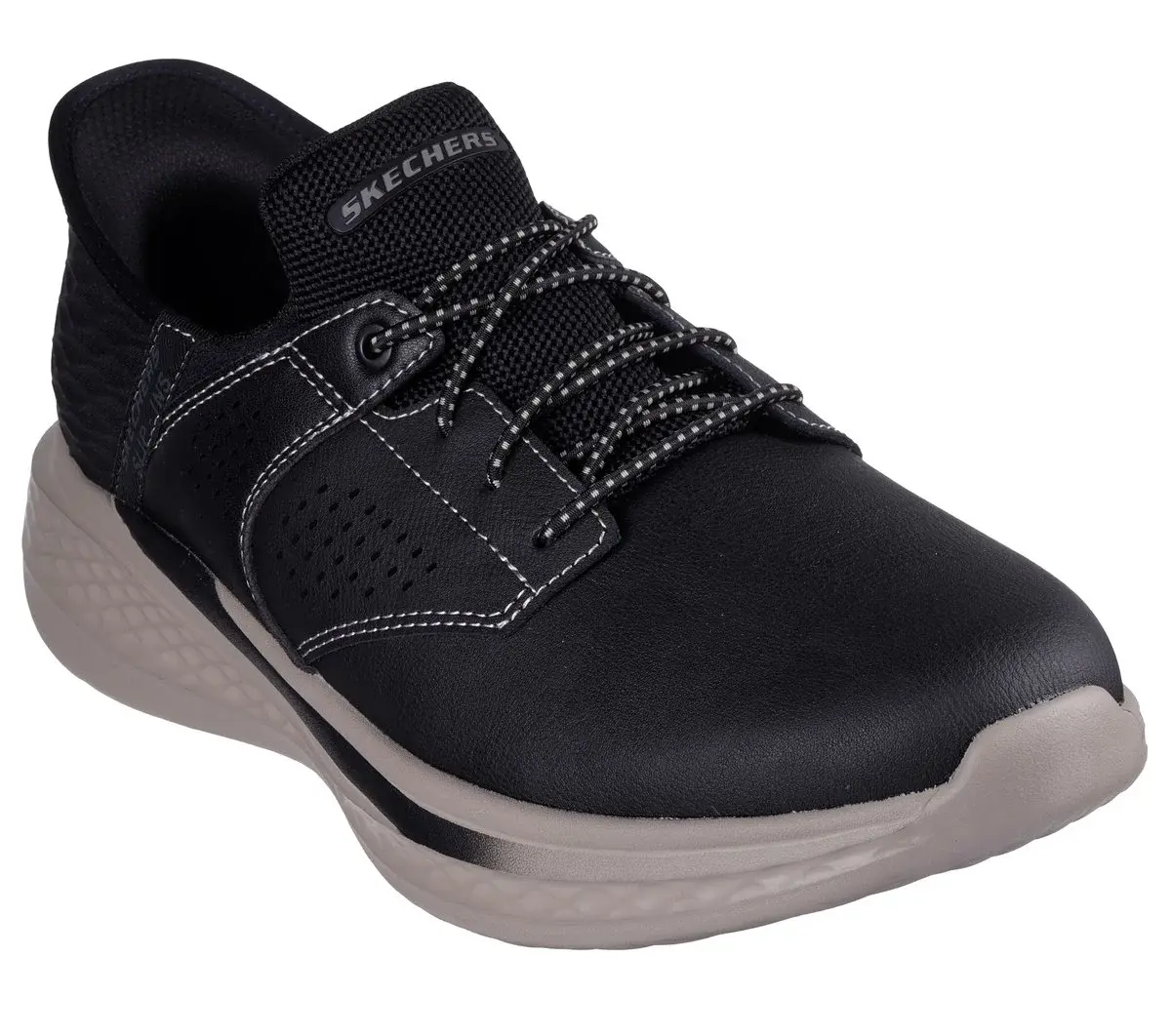Step into convenient walking comfort with Skechers Slip-ins® Relaxed Fit®: Slade – Macklin. Designed with our exclusive Heel Pillow™, this stretch-laced style features a leather, mesh and synthetic upper, charcoal-infused Skechers Air-Cooled Memory Foam® insole and Skechers Goga Mat Arch™ support.