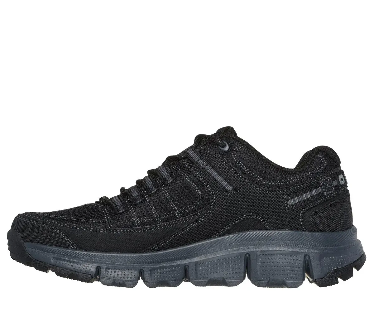 Step up your outdoor tech style wearing Skechers Summits AT – Upper Draft. This modern outdoor lace-up features a durable mesh upper with synthetic overlays, a super flexible trenched traction outsole, and a Skechers Memory Foam™ cushioned comfort insole.