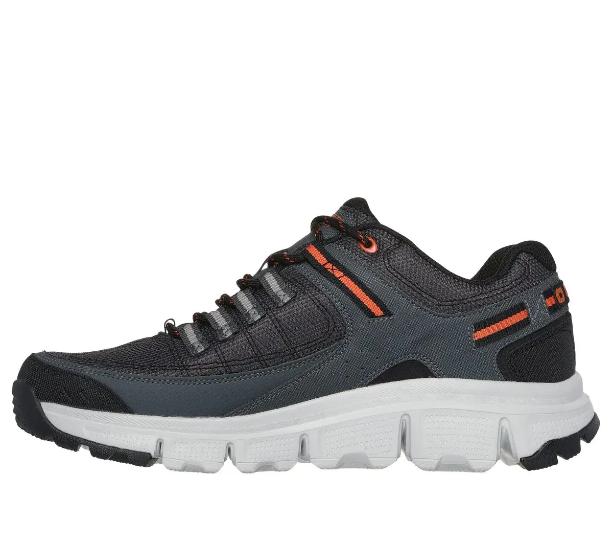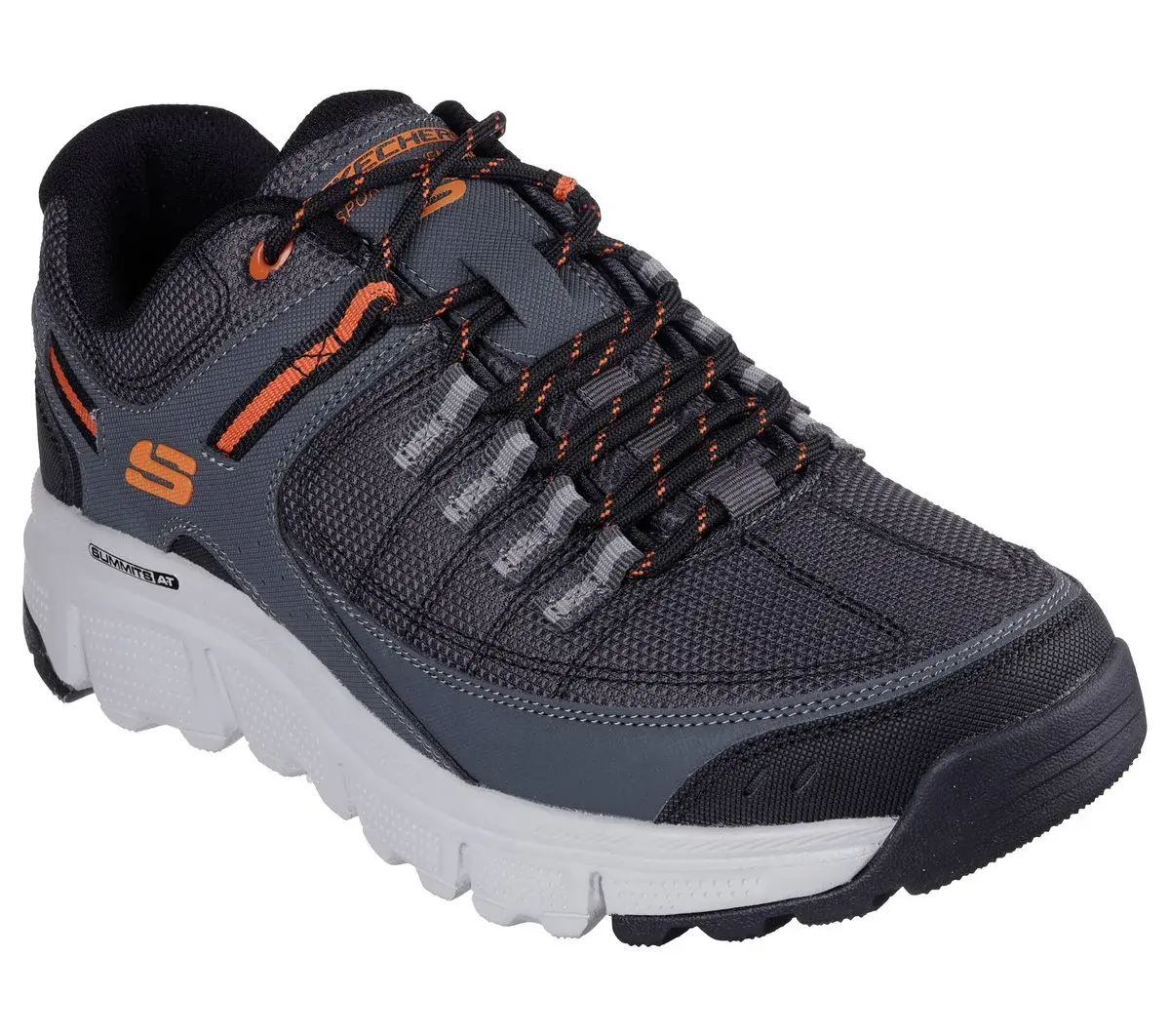 Step up your outdoor tech style wearing Skechers Summits AT – Upper Draft. This modern outdoor lace-up features a durable mesh upper with synthetic overlays, a super flexible trenched traction outsole, and a Skechers Memory Foam™ cushioned comfort insole.