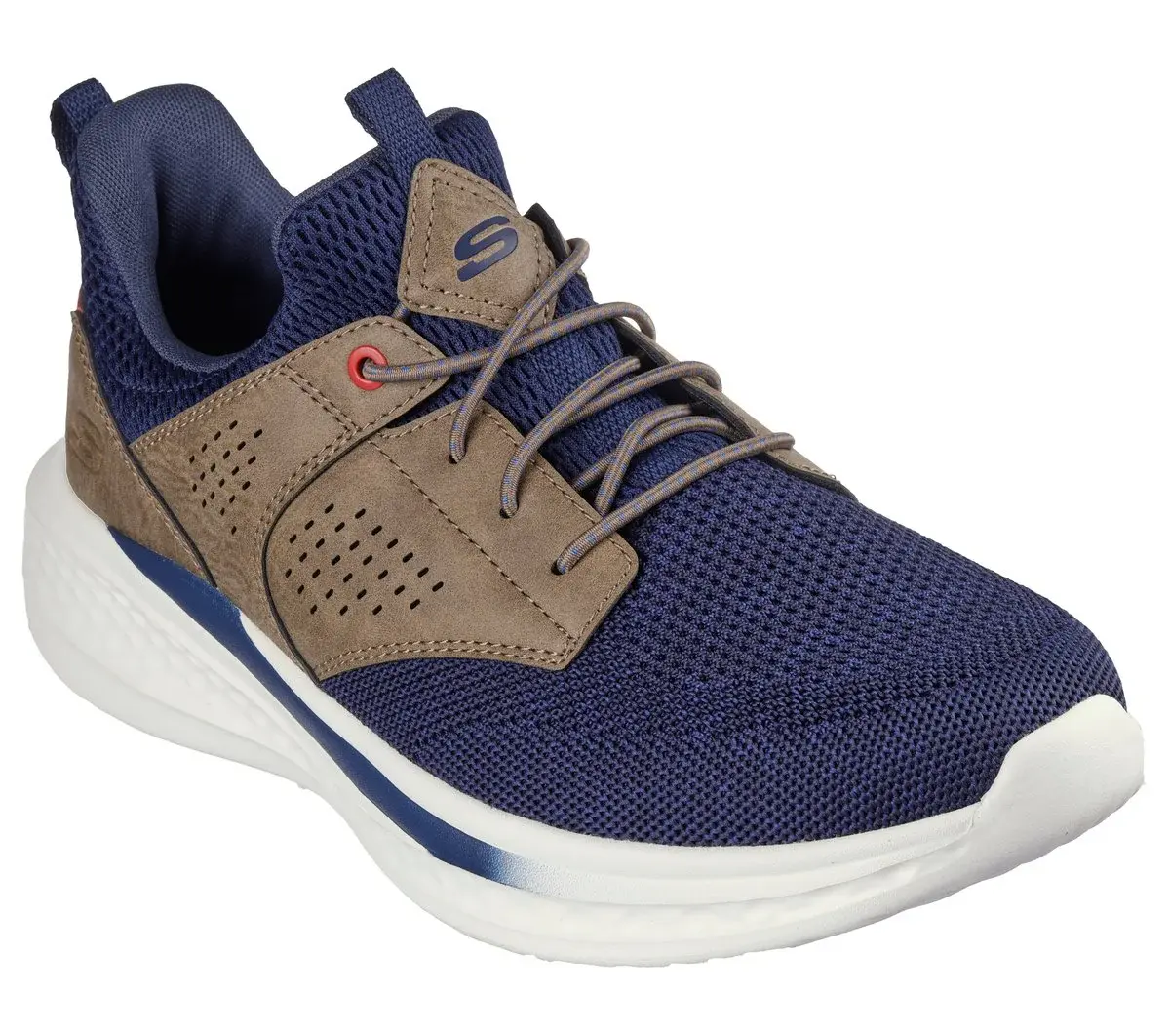 Classic modern style combines with comfort in Skechers Relaxed Fit®: Slade – Breyer. This stretch-laced vegan style features a mesh and synthetic upper with a charcoal-infused Skechers Air-Cooled Memory Foam® insole and a Skechers Goga Mat Arch™ for added support.