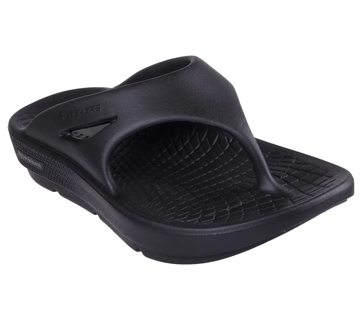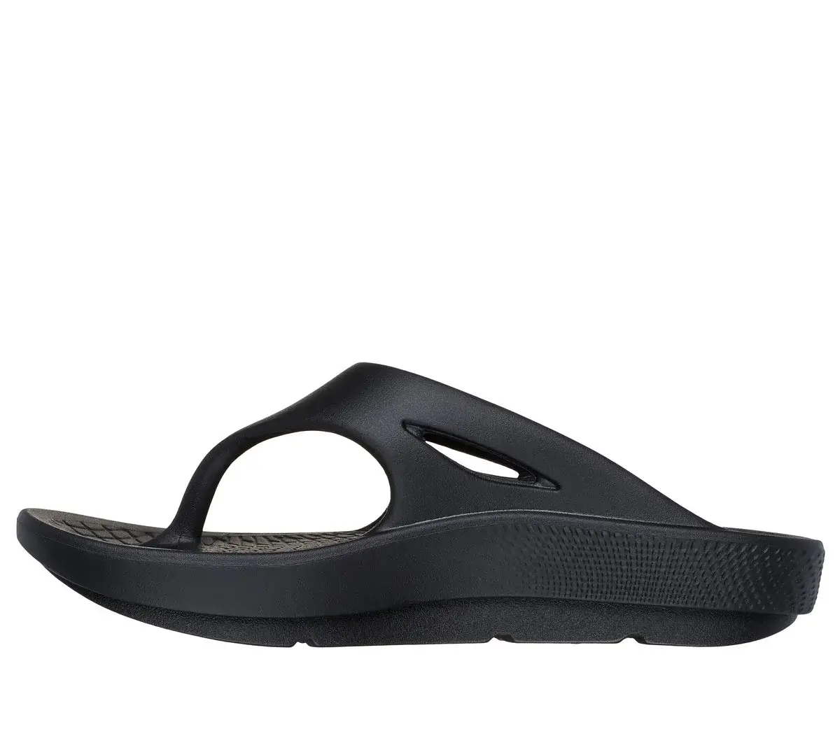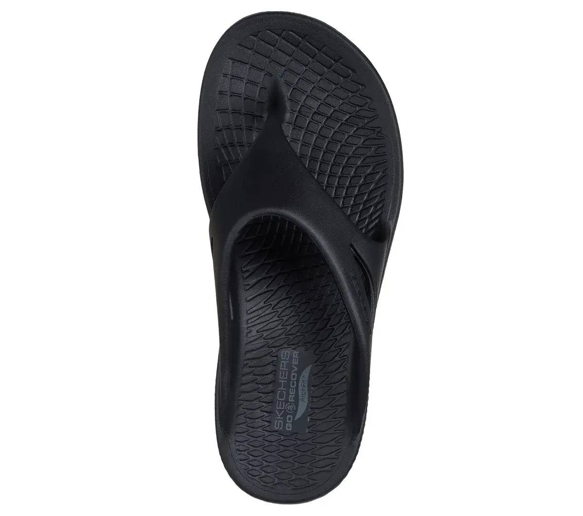 Relax in specialized comfort and style wearing Skechers GO RECOVER® Refresh – Contend. This athletic recovery thong sandal has been granted the APMA Seal of Acceptance and features a synthetic upper with premium Hyper Burst® foam and Arch Fit® support redistributes pressure for impact reduction.