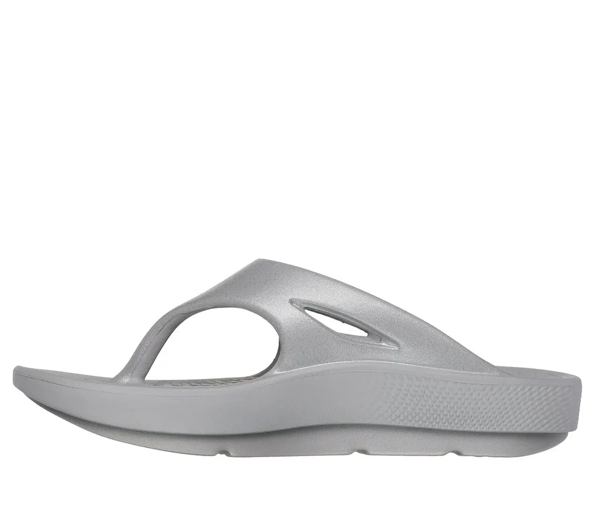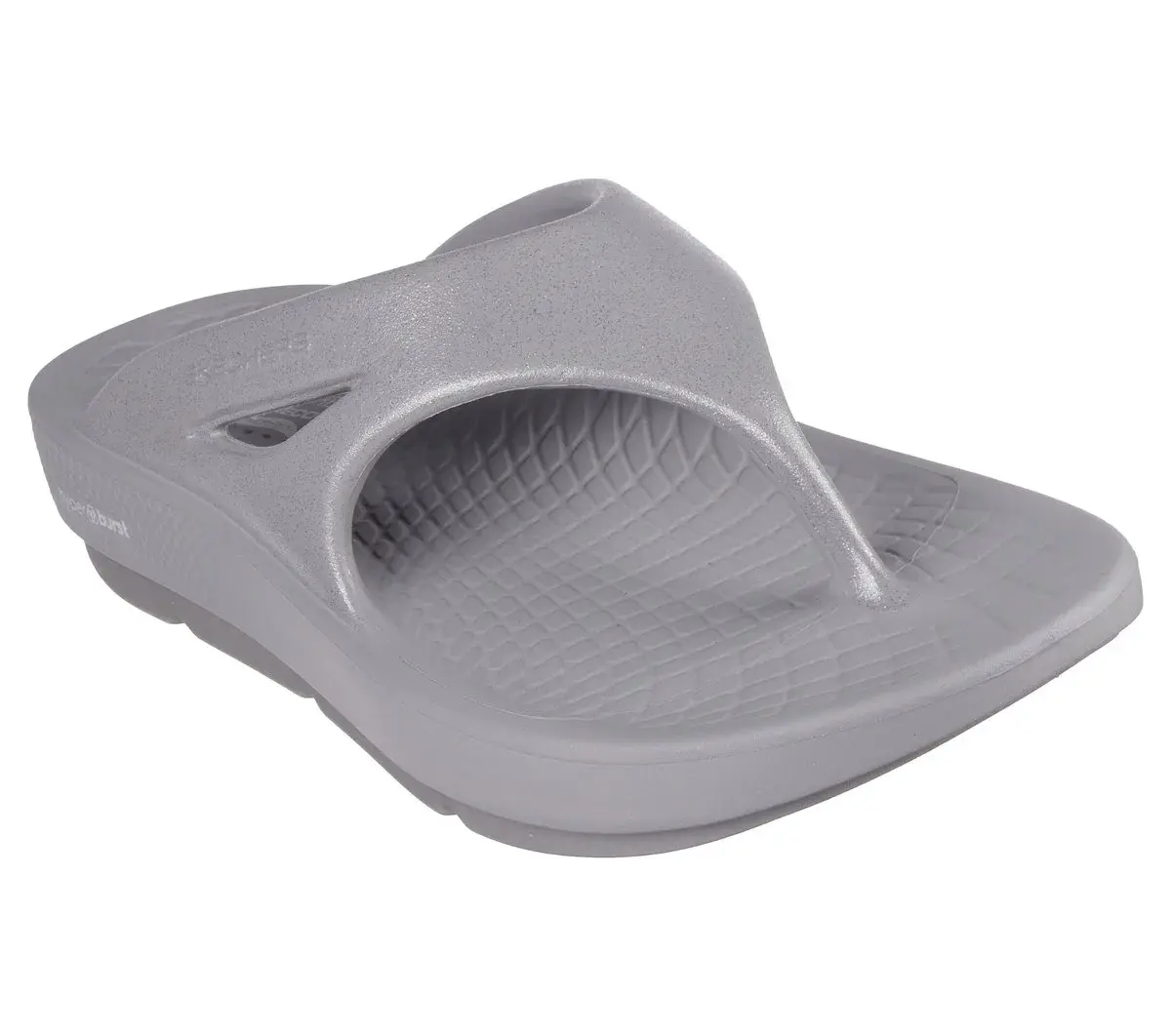 Super Critical® Relax in specialized comfort and style wearing Skechers GO RECOVER® Refresh – Glitzy. This athletic recovery thong sandal has been granted the APMA Seal of Acceptance and features a sparkly synthetic upper with premium Hyper Burst® foam, plus Arch Fit® support and a Lux Foam + contoured footbed.