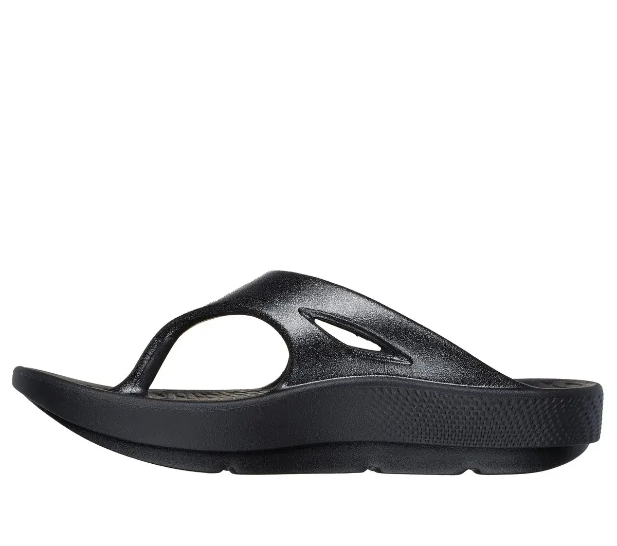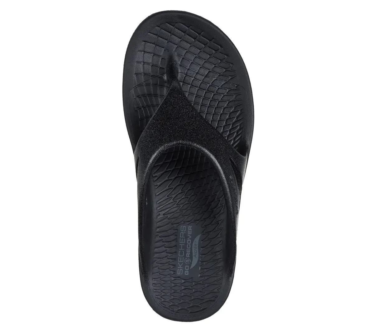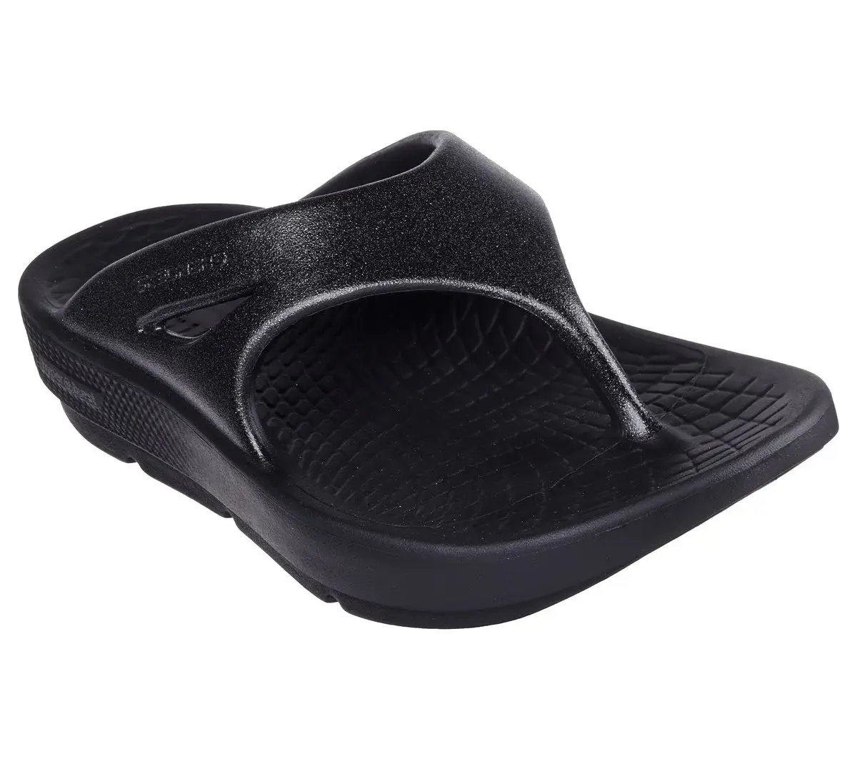 Super Critical® Relax in specialized comfort and style wearing Skechers GO RECOVER® Refresh – Glitzy. This athletic recovery thong sandal has been granted the APMA Seal of Acceptance and features a sparkly synthetic upper with premium Hyper Burst® foam, plus Arch Fit® support and a Lux Foam + contoured footbed.