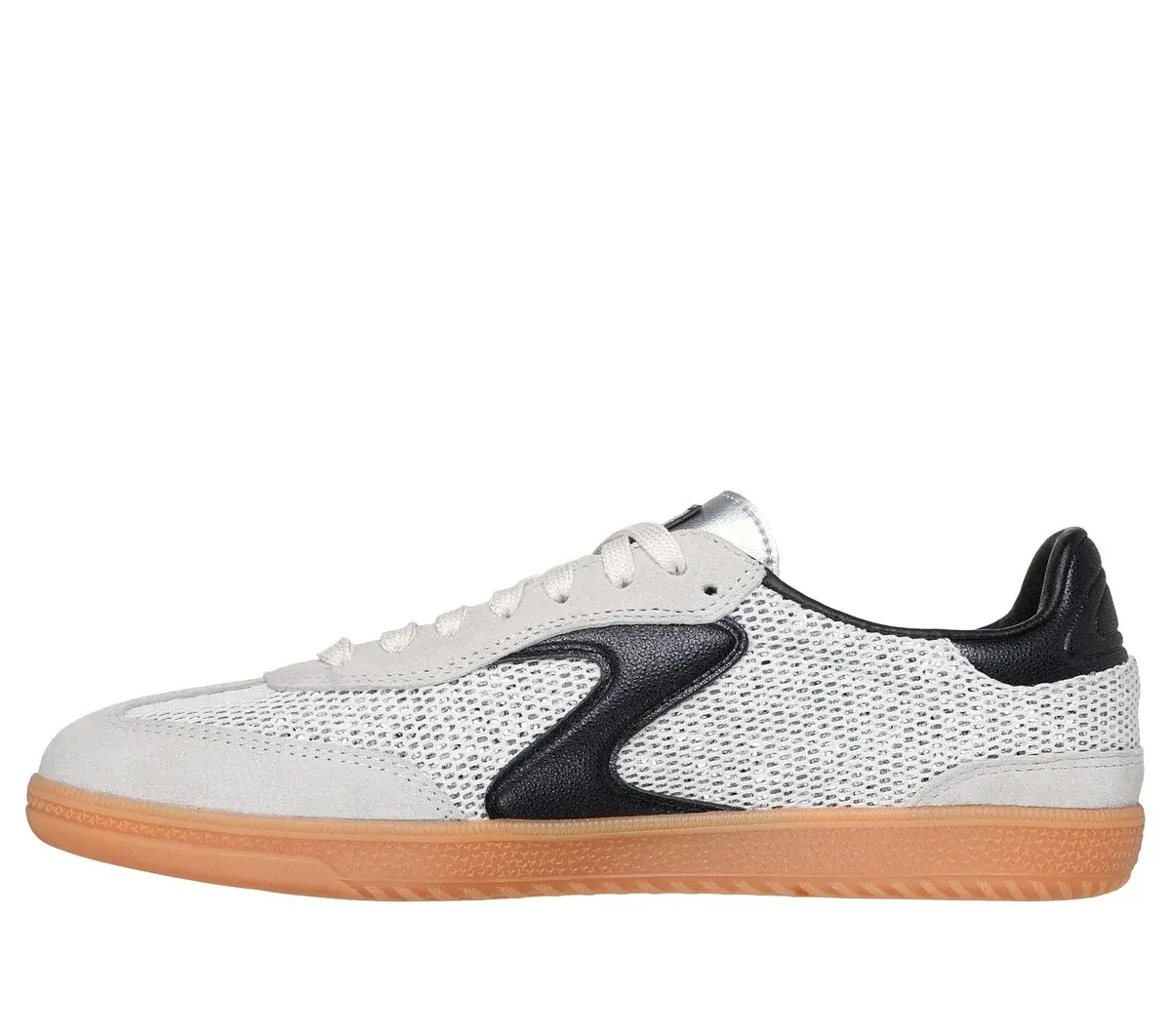 A modern classic meets fresh comfort in Skechers Hotshot – Meshing Well. This laced court-style sneaker features a netted mesh upper with glitter underlays and leather overlays, a contrast ‘S’ quarter logo, and a cushioned Skechers Air-Cooled Memory Foam® insole.
