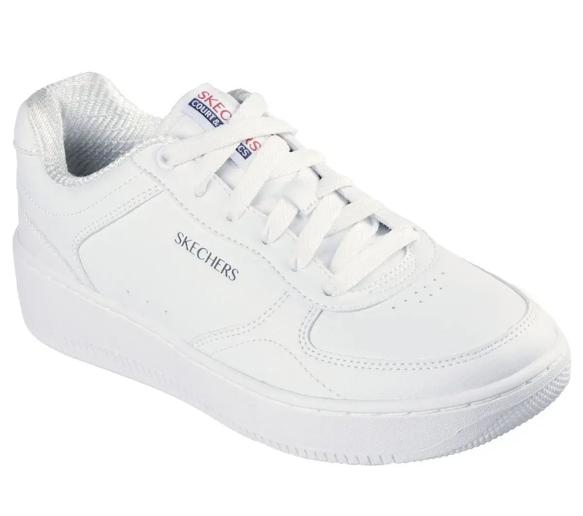 Casual modern style and comfort combine in Skechers Sport Court 2.0 – Core Essential. Featuring a sleek court silhouette, lace-up duraleather upper and a cushioned Skechers Air-Cooled Memory Foam® insole.