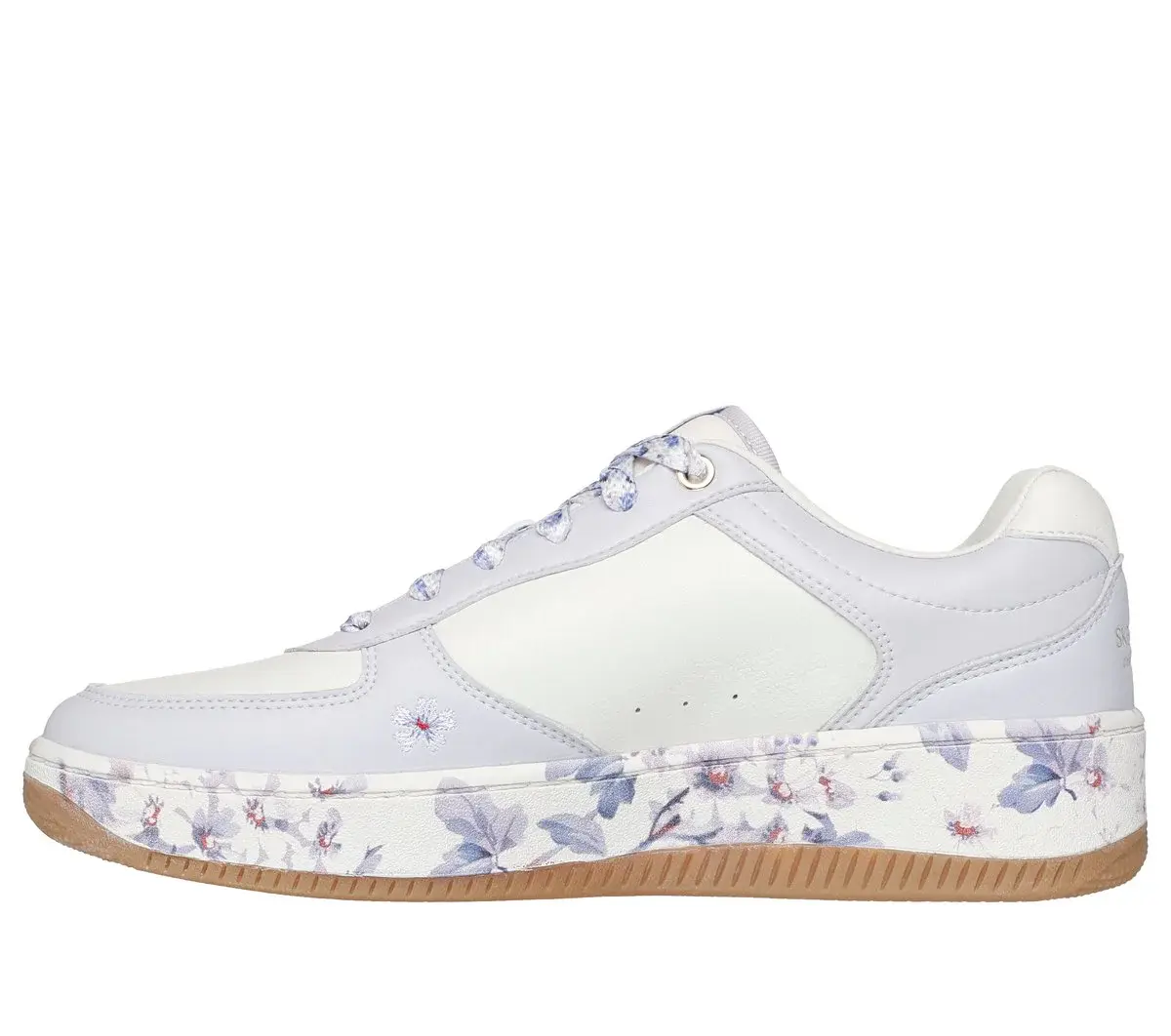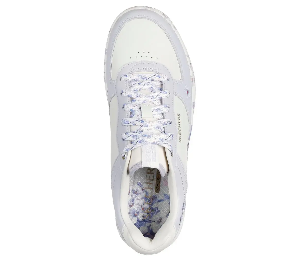 Watch your style bloom with Skechers Sport Court 2.0 – Floral Frenzy. This lace-up court style features a duraleather upper, floral print along the midsole, and a cushioned Skechers Air-Cooled Memory Foam® insole.