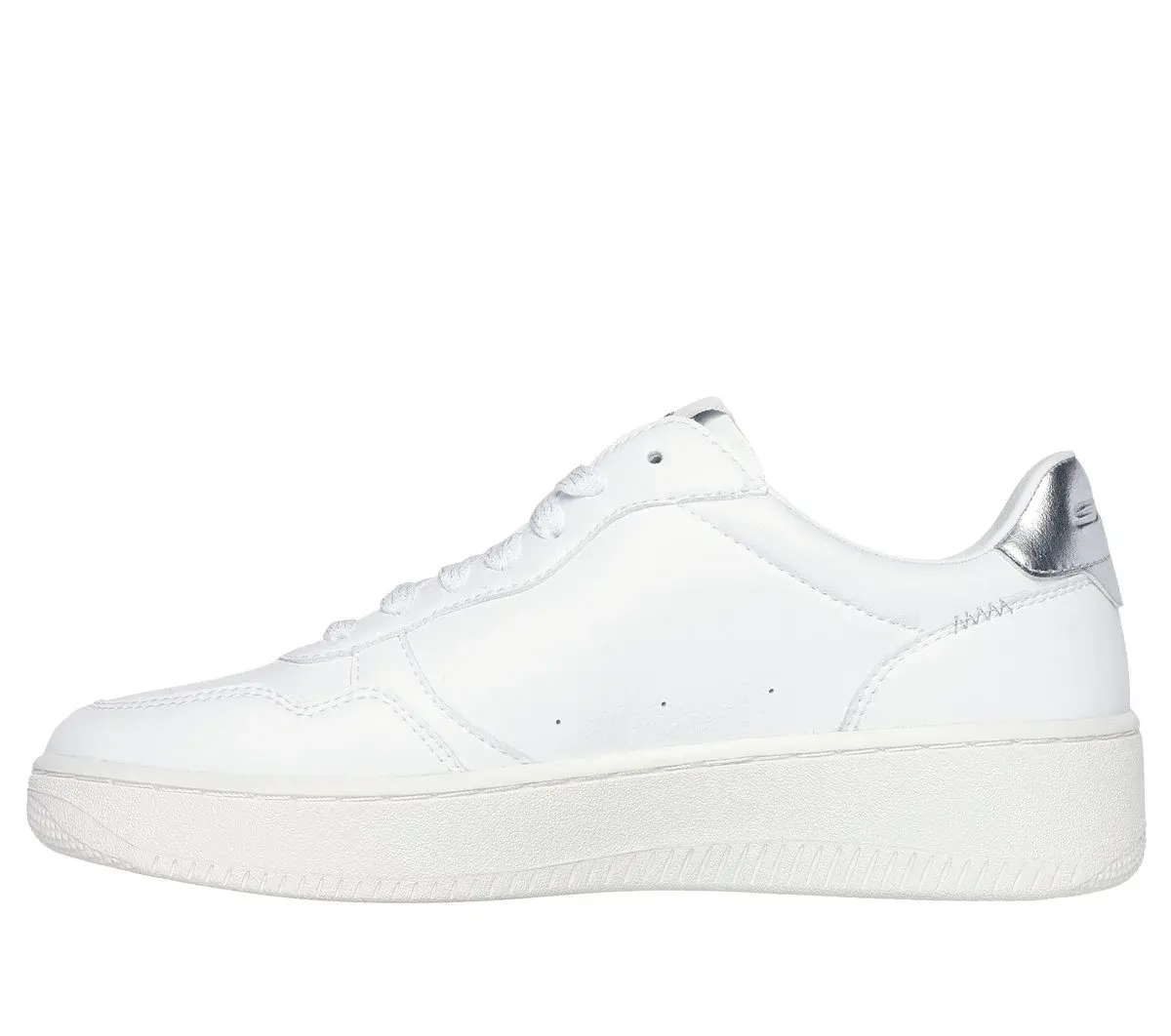Casual modern style and effortless comfort combine in Skechers Sport Court 2.0 – Gleaming Shine. This a sleek court silhouette features a lace-up duraleather upper with a metallic trim and a cushioned Skechers Air-Cooled Memory Foam® insole.