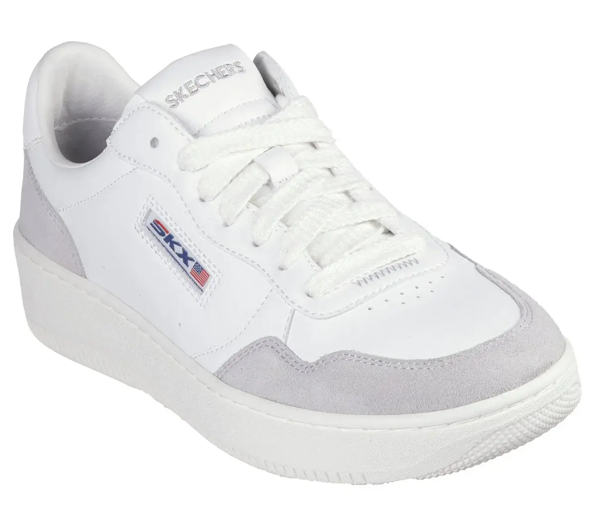 Casual modern style and comfort combine in Skechers Sport Court 2.0 – On The Block. Featuring a sleek court silhouette, this lace-up boasts a duraleather and suede upper, complemented by a cushioned Skechers Air-Cooled Memory Foam® insole.