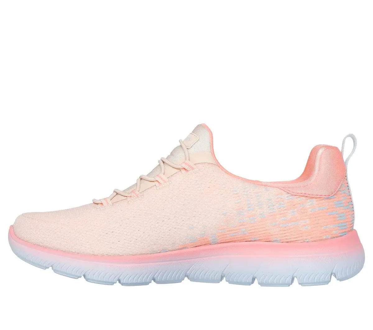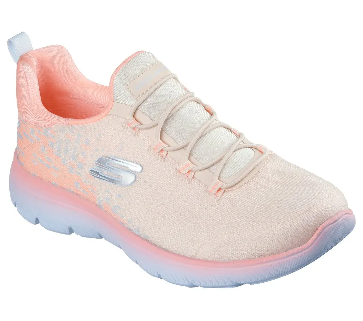Reach the height of comfort and athletic style with Skechers Summits – Morning Glow. This stretch-laced vegan design features a mono mesh upper and a cushioned Skechers Memory Foam™ comfort insole.