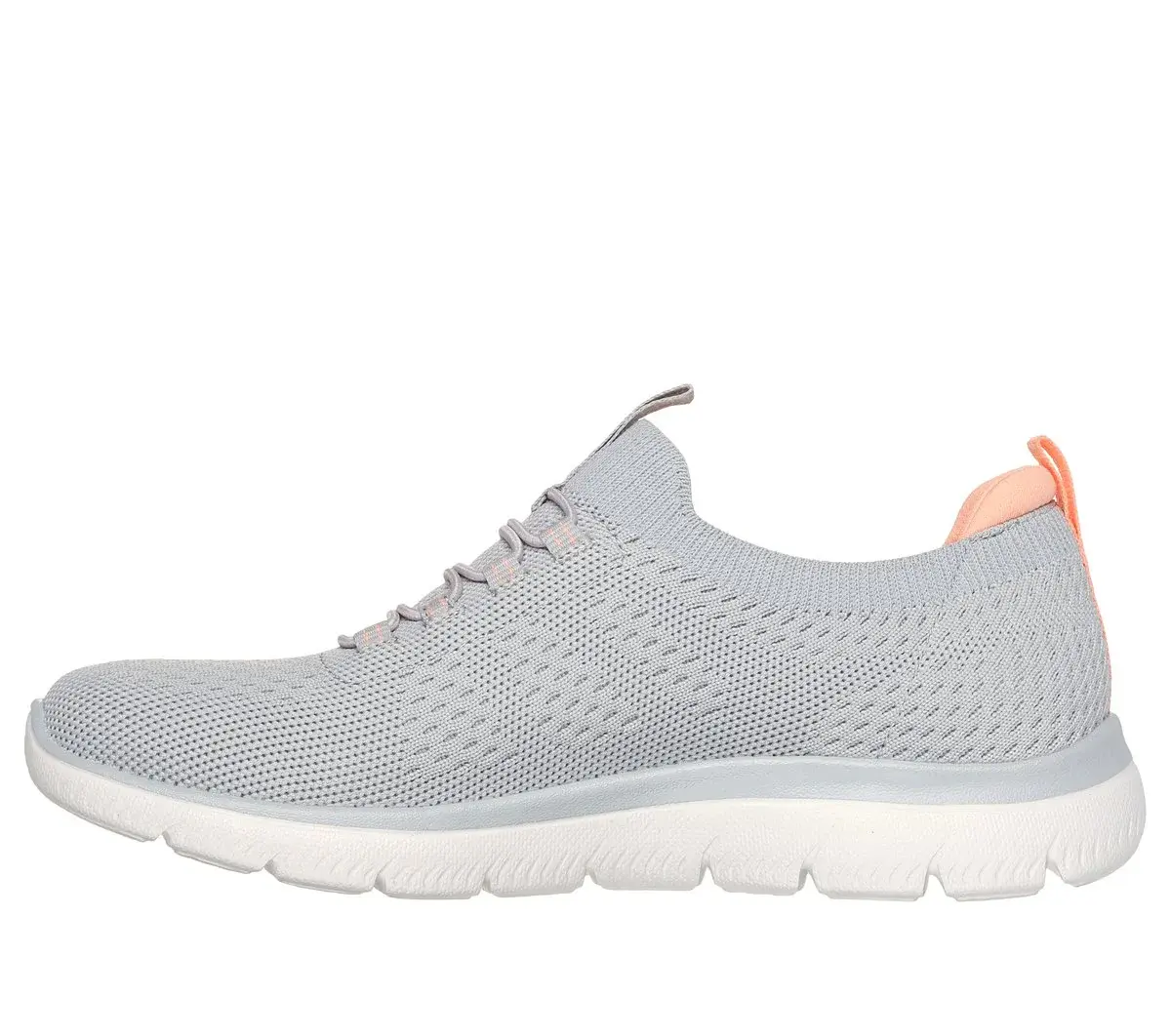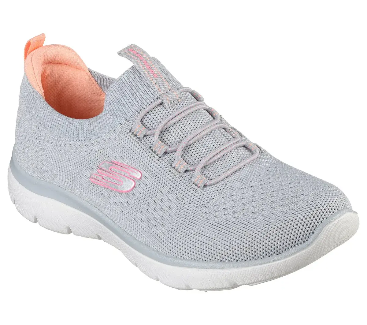 Reach the height of comfort and athletic style with Skechers Summits. This stretch-laced vegan design features a Stretch Fit® engineered knit upper and a cushioned Skechers Memory Foam™ comfort insole.