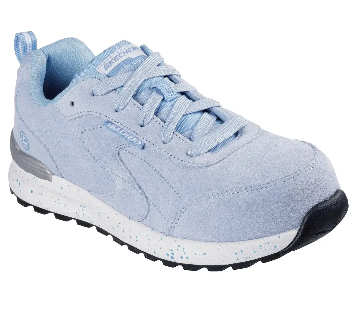 Start your shift in surefooted protective comfort with Skechers Work™: Bulklin – Haidly. This slip-resistant work sneaker features a genuine suede upper with a lace-up front, cushioned Skechers Air-Cooled Memory Foam® insole, and a non-metallic carbon nano safety toe.