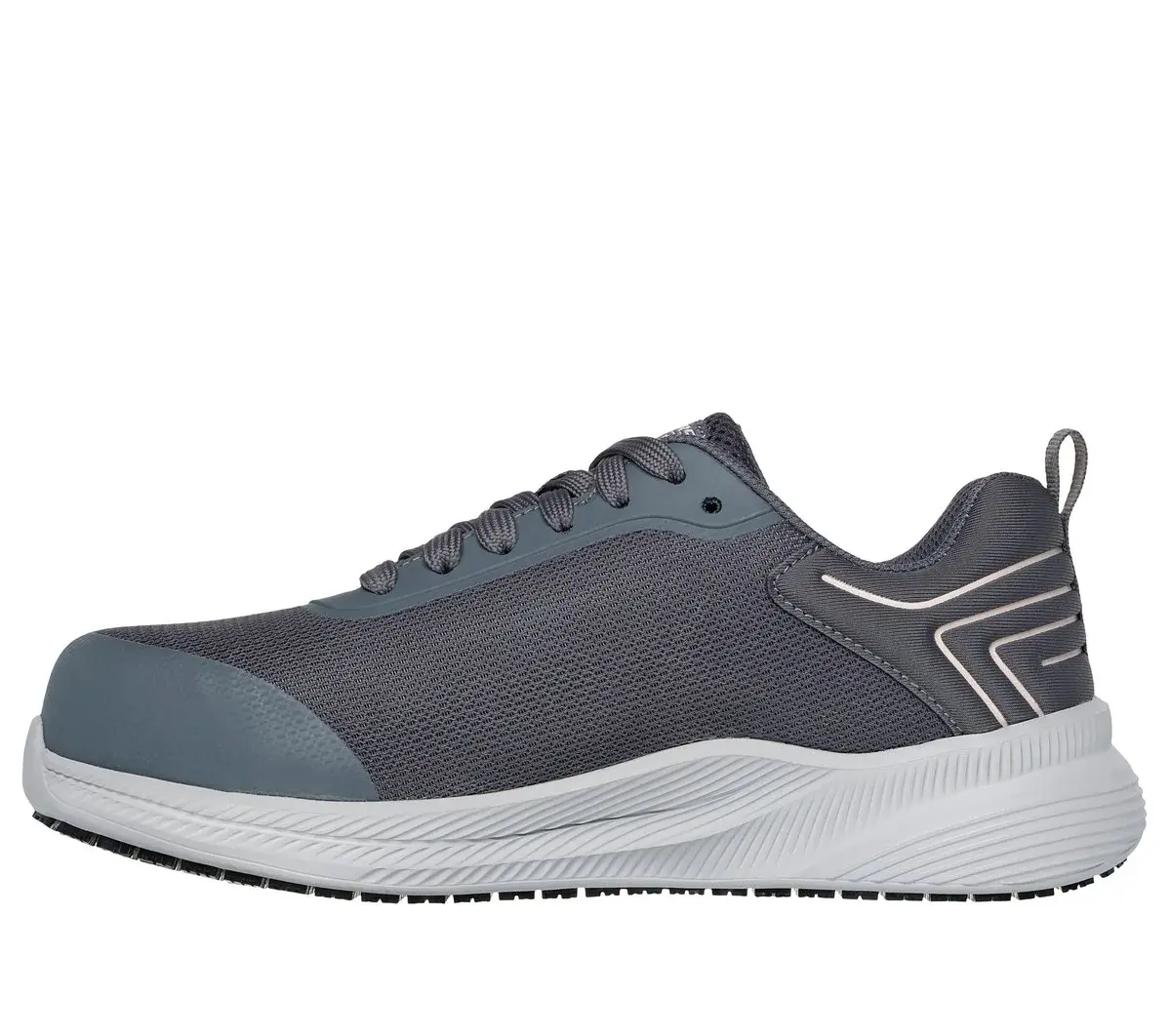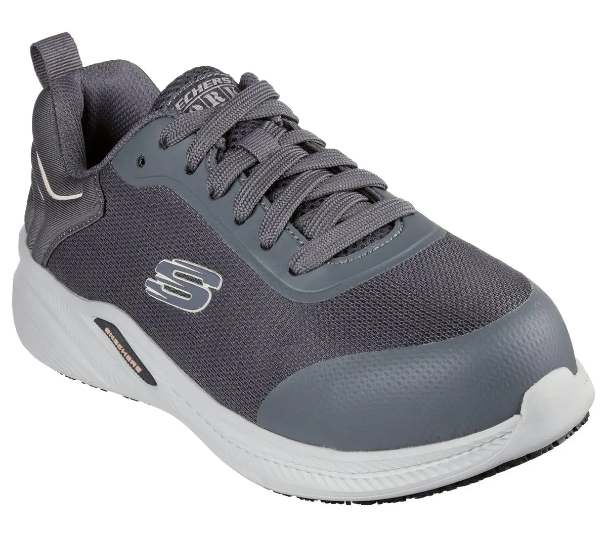 Surefooted comfort and safety combine in Skechers Work™ Carbix – Nia. This slip-resistant athletic inspired design features a lace-up synthetic and woven fabric upper with a cushioned Skechers Air-Cooled Memory Foam® insole and a carbon nano safety toe.