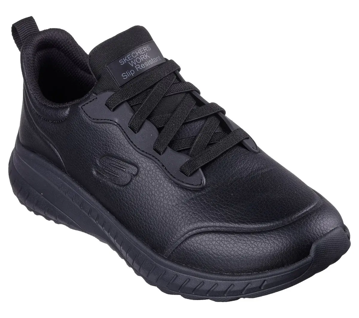 Stay safe and comfortable all day with the easy-wearing Skechers Work™ Relaxed Fit®: Squad Chaos SR – Rodey. This slip-resistant athletic style features a synthetic duraleather upper with stretch laces and a cushioned Skechers Air-Cooled Memory Foam® comfort insole.