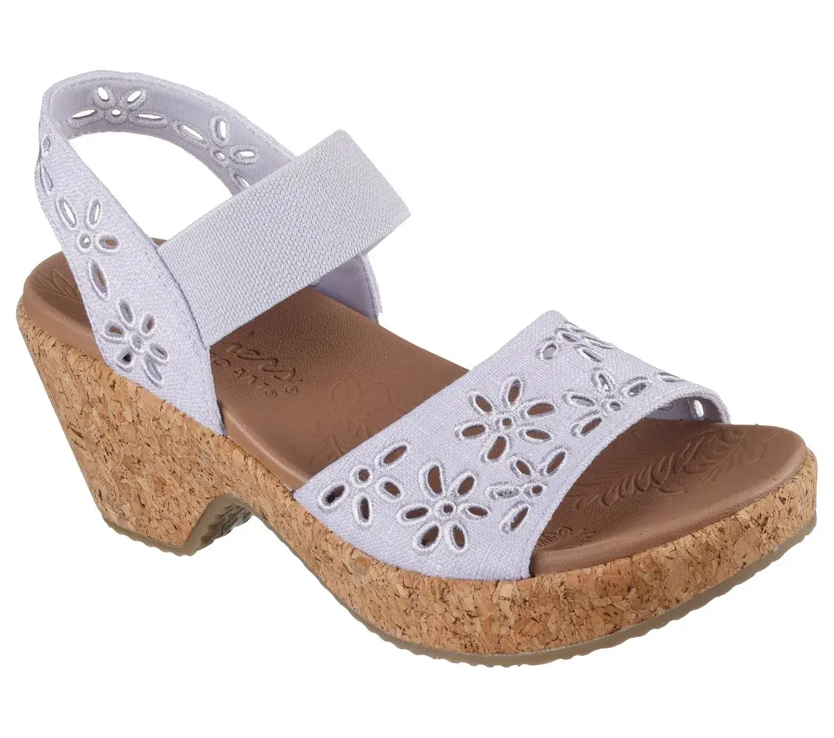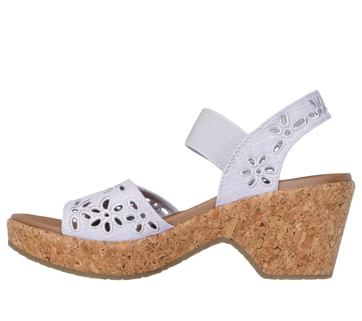 Diamond style comfort and looks combine in Skechers Cali® Brystol – Beach Bliss. This strappy wedge sandal features a canvas floral eyelet upper with a pull-on gore strap, and a cushioned Luxe Foam® footbed.