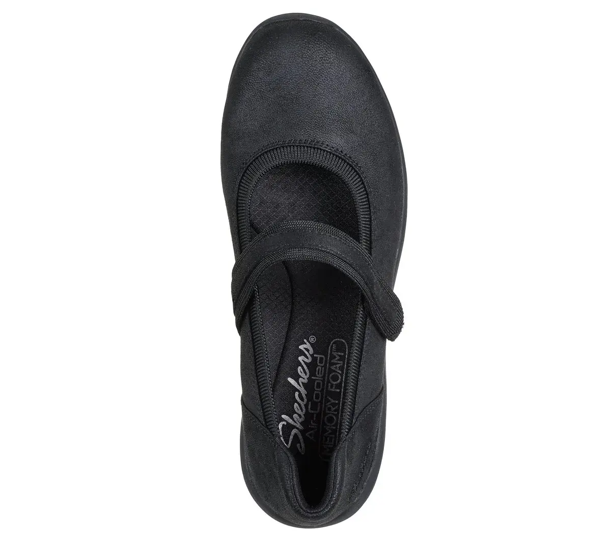 Experience casual all-day comfort in Skechers Arya – Always Rising. This vegan Mary Jane style features a Stretch Fit® microleather upper with an adjustable instep strap and a cushioned Skechers Air-Cooled Memory Foam® comfort insole.