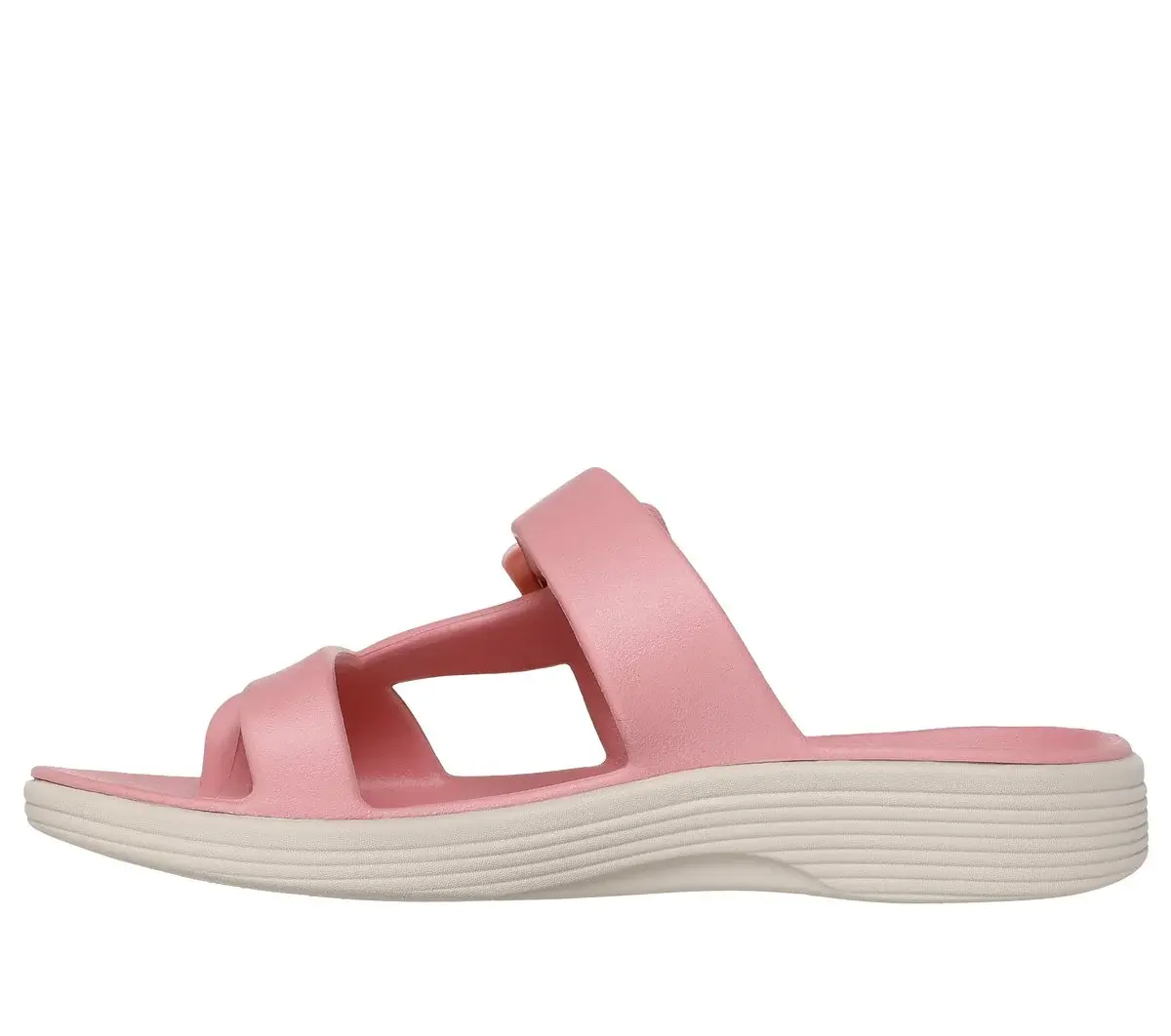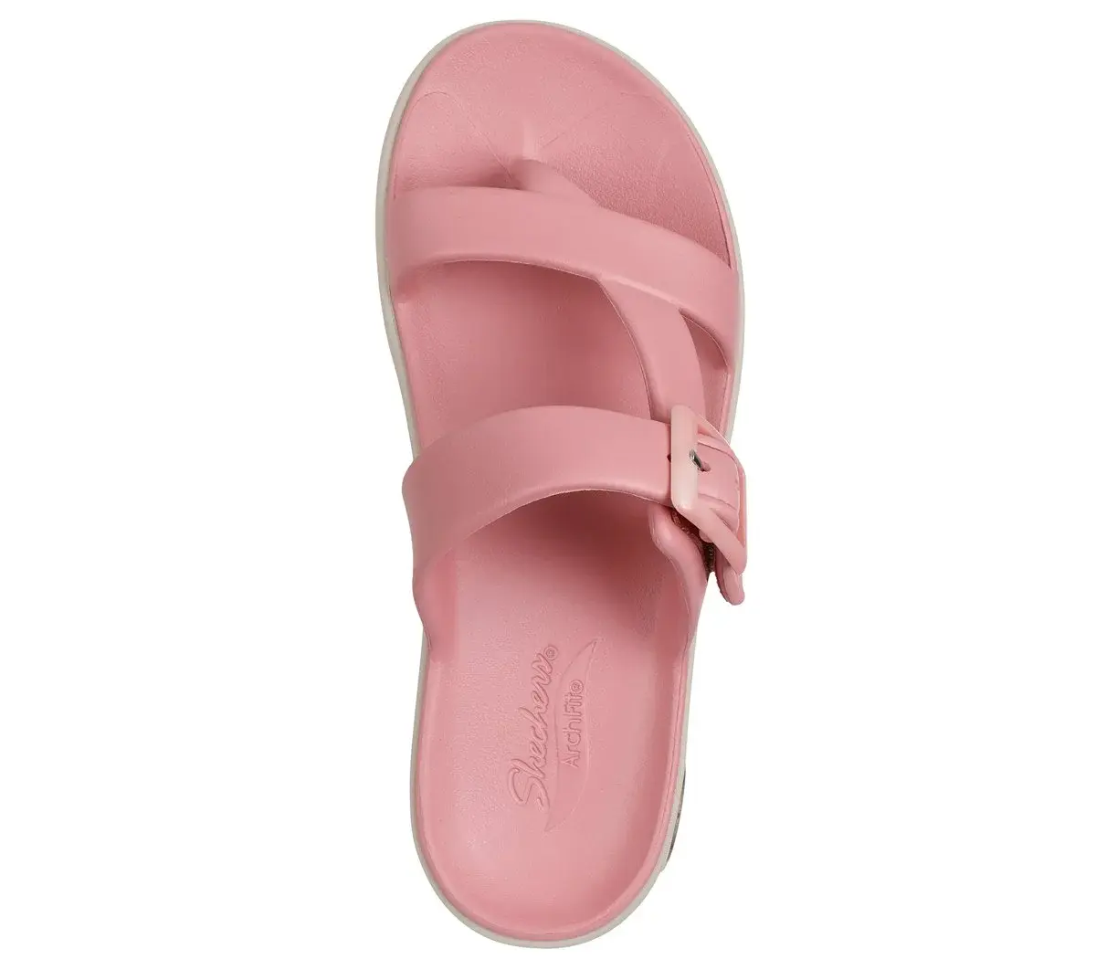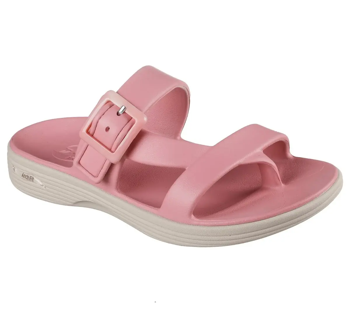 Summery style combines with long-lasting comfort in Skechers Foamies®: Arch Fit® Maui – Seaside. This slide sandal features a Foamies® sculpted lightweight EVA upper, buckle detail, toe loop, and a supportive Arch Fit® footbed.