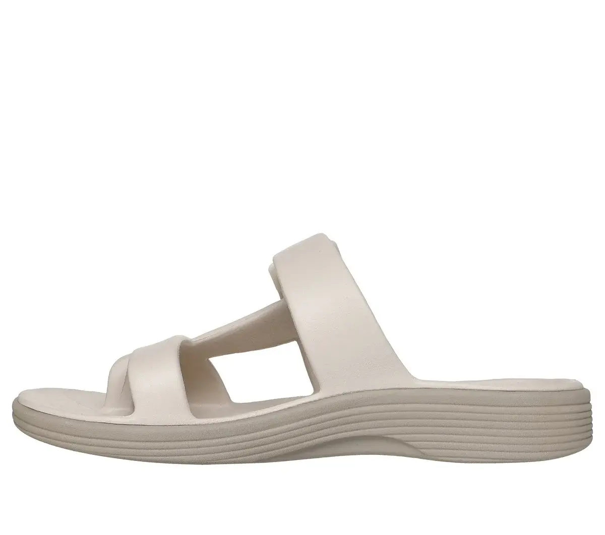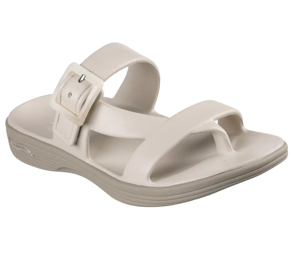 Summery style combines with long-lasting comfort in Skechers Foamies®: Arch Fit® Maui – Seaside. This slide sandal features a Foamies® sculpted lightweight EVA upper, buckle detail, toe loop, and a supportive Arch Fit® footbed.